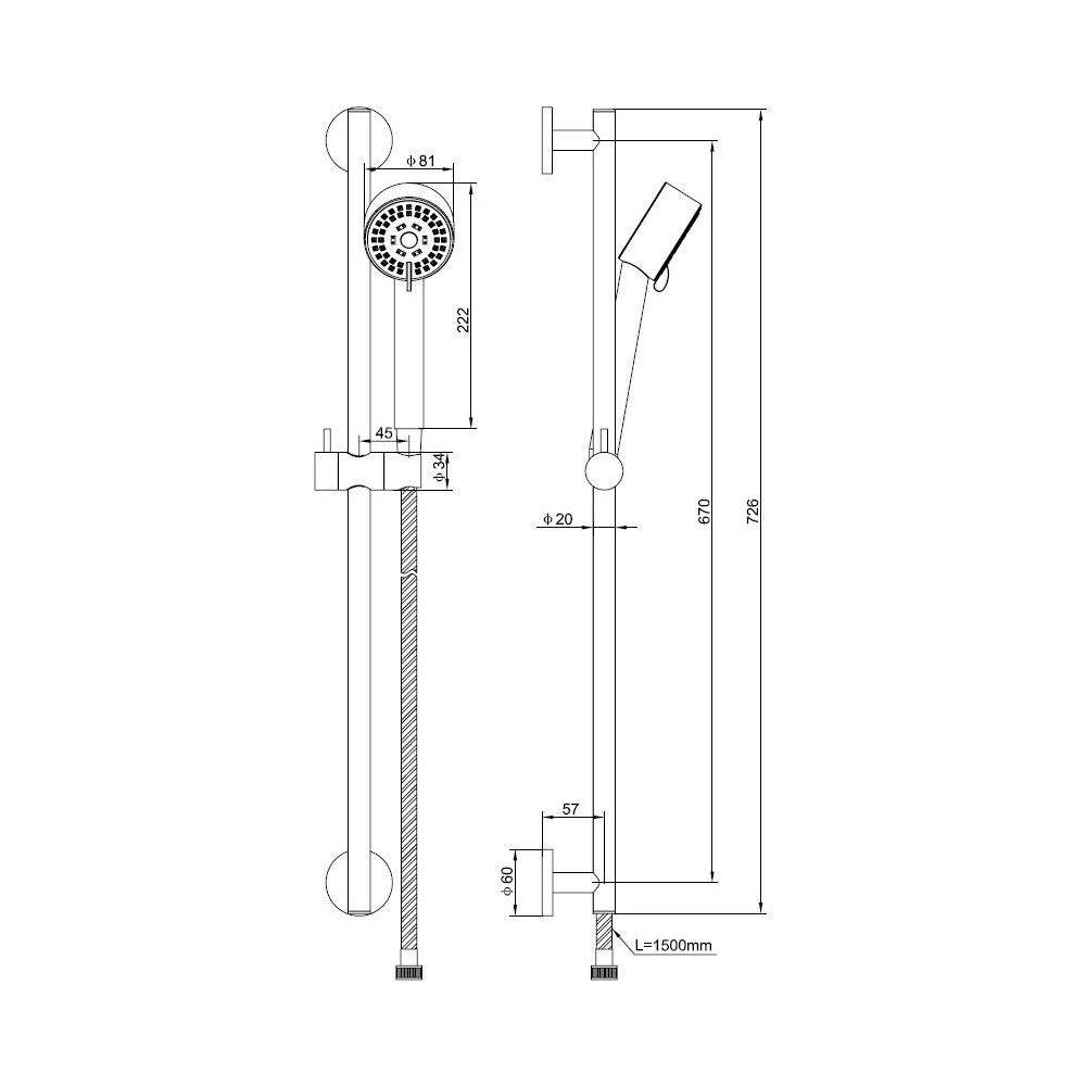 Abzu handdouche met een douchekop van 10cm. Bij deze set zit tevens een doucheslang van 150cm en een handdouchehouder die tevens van geborsteld staal is.