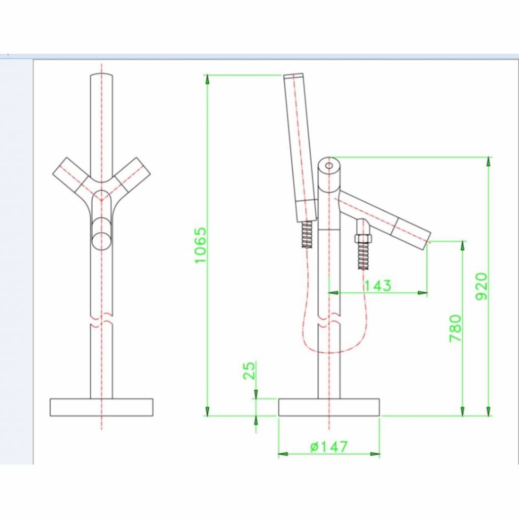Badkraan Vrijstaande Strong Beste Design Chroom is een rond afgewerkte kraan met een behoorlijk eigenaardig design. De uitloop van de kraan zit op 14,3cm en de totale hoogte van de uitloop op 78cm.