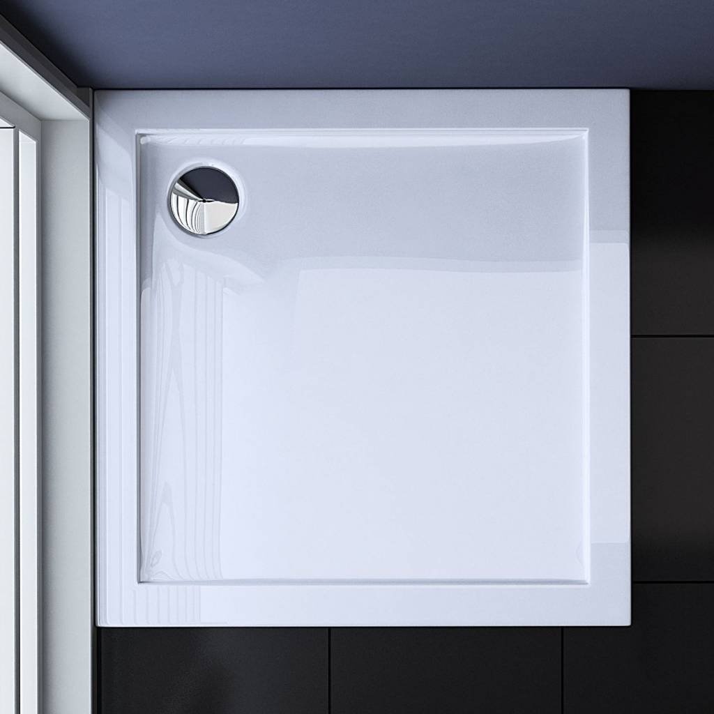 De afvoer zit bevestigd in de hoek van de bak voor een mooi uiterlijk. De mooie hoogglans douchebak heeft een lage opstaande rand zodat het water niet weg kan lopen. De Douchebak Dona laag model 100x100x4cm wordt geleverd zonder afvoerplug en poten!