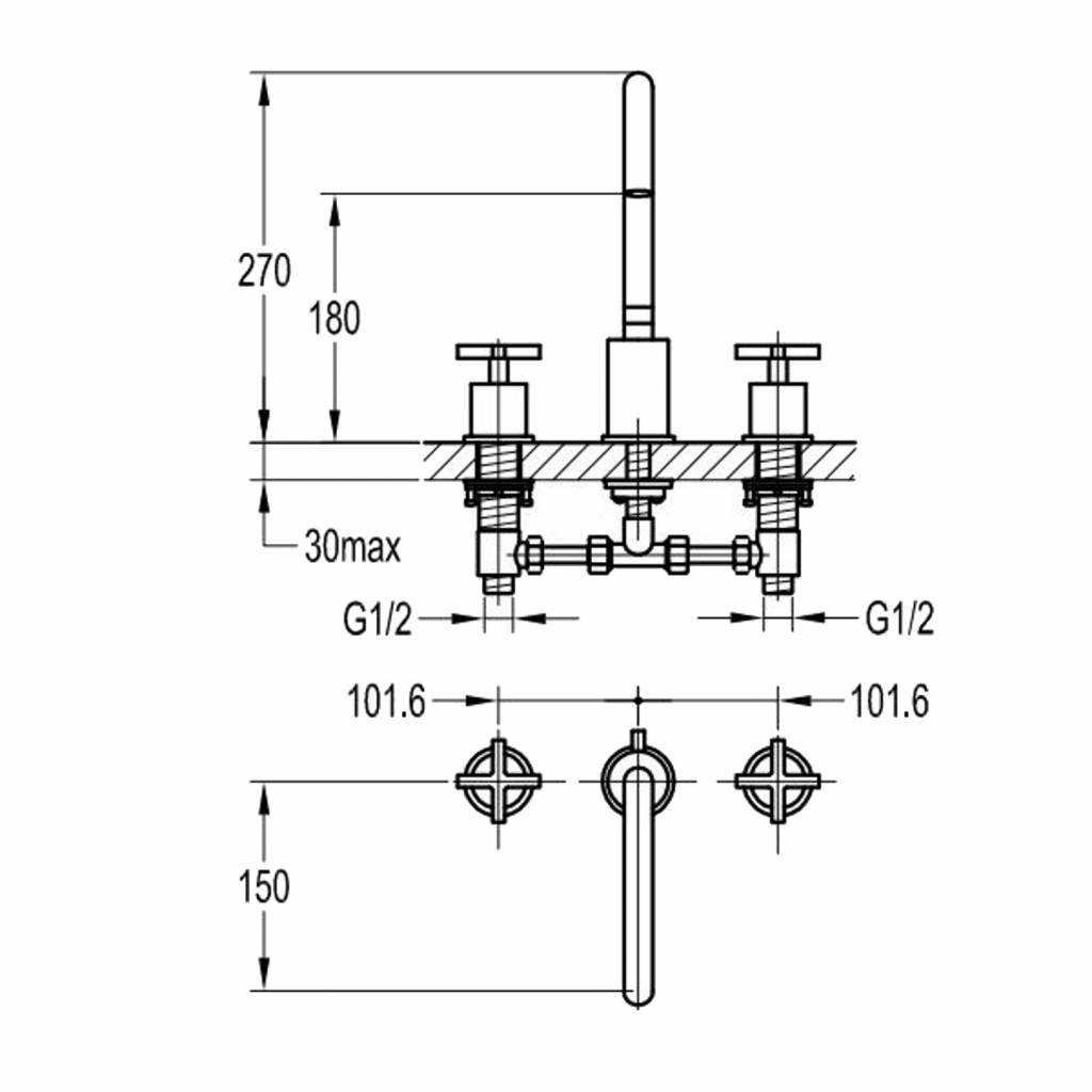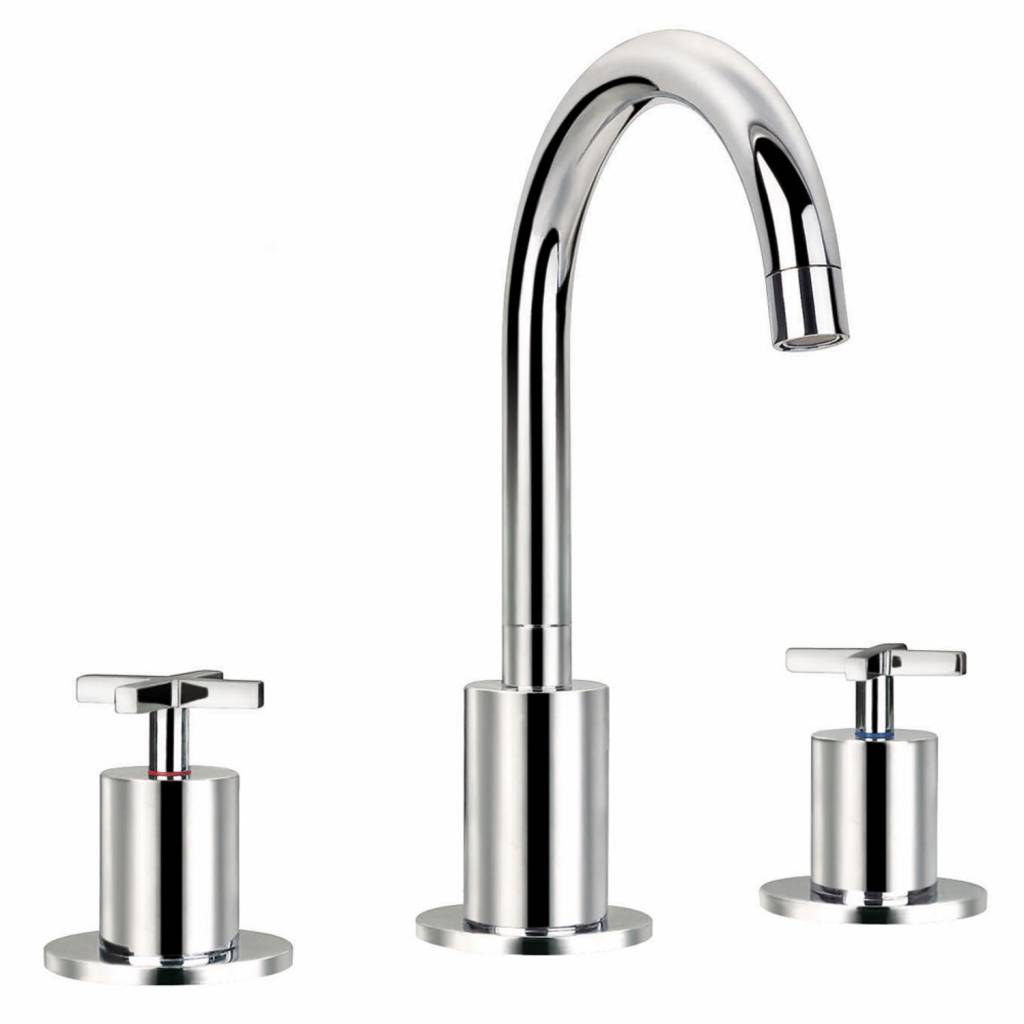 De chromen kraan is een inbouw model met 3 gaten, ook wel 3-gats. De mengkraan heeft twee losse kruisgrepen waarmee u de temperatuur van de water kunt bepalen. De keramische schijven zorgen voor het jaren lang soepel houden in de beweging om water door te laten en de kraan goed te sluiten.