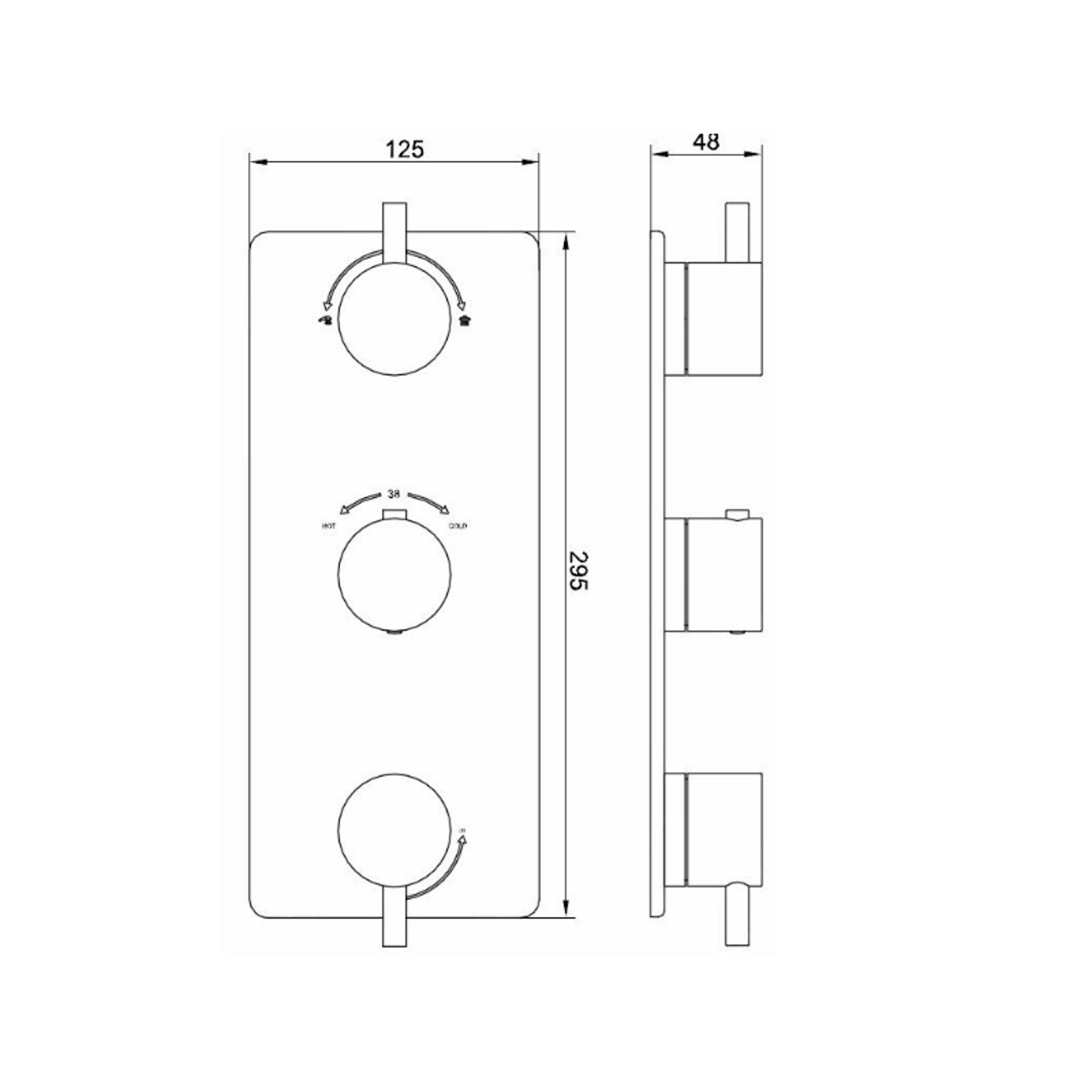 De afdekplaat is 12,5x32 cm. De douchethermostaat is van messing in de kleur geborsteld brons koper. Om deze kraan goed te laten werken heeft u hierbij een Bit inbouwdeel 3-weg nodig. Deze is niet inbegrepen en kunt u los mee bestellen.