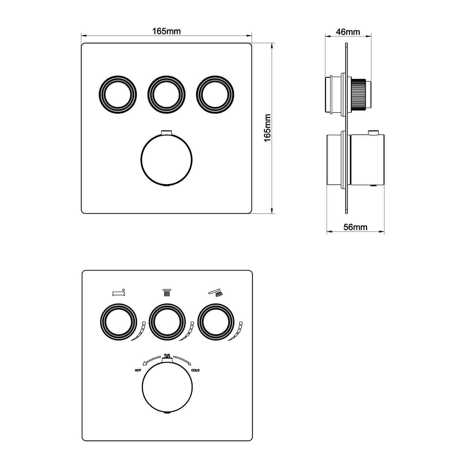 Bent u op zoek naar een afbouwdeel voor in uw douche? Dan is deze afbouwdeel van Wiesbaden uit de serie Caral Klik Pro echt iets voor u. Hij heeft de kleur geborsteld brons koper. De afmetingen van dit afbouwdeel zijn: 16.5 cm hoog, 16.5 cm breed en 5.6 cm diep. Bovenin het deel zitten 3 draaiknoppen, hiermee bedient u de handdouche, de hoofddouche en de kraan om het bad te vullen. Met de andere draaiknop kunt u de temperatuur instellen naar de gewenste temperatuur. Door zijn strakke design en kleur past dit afbouwdeel in elke moderne badkamer.