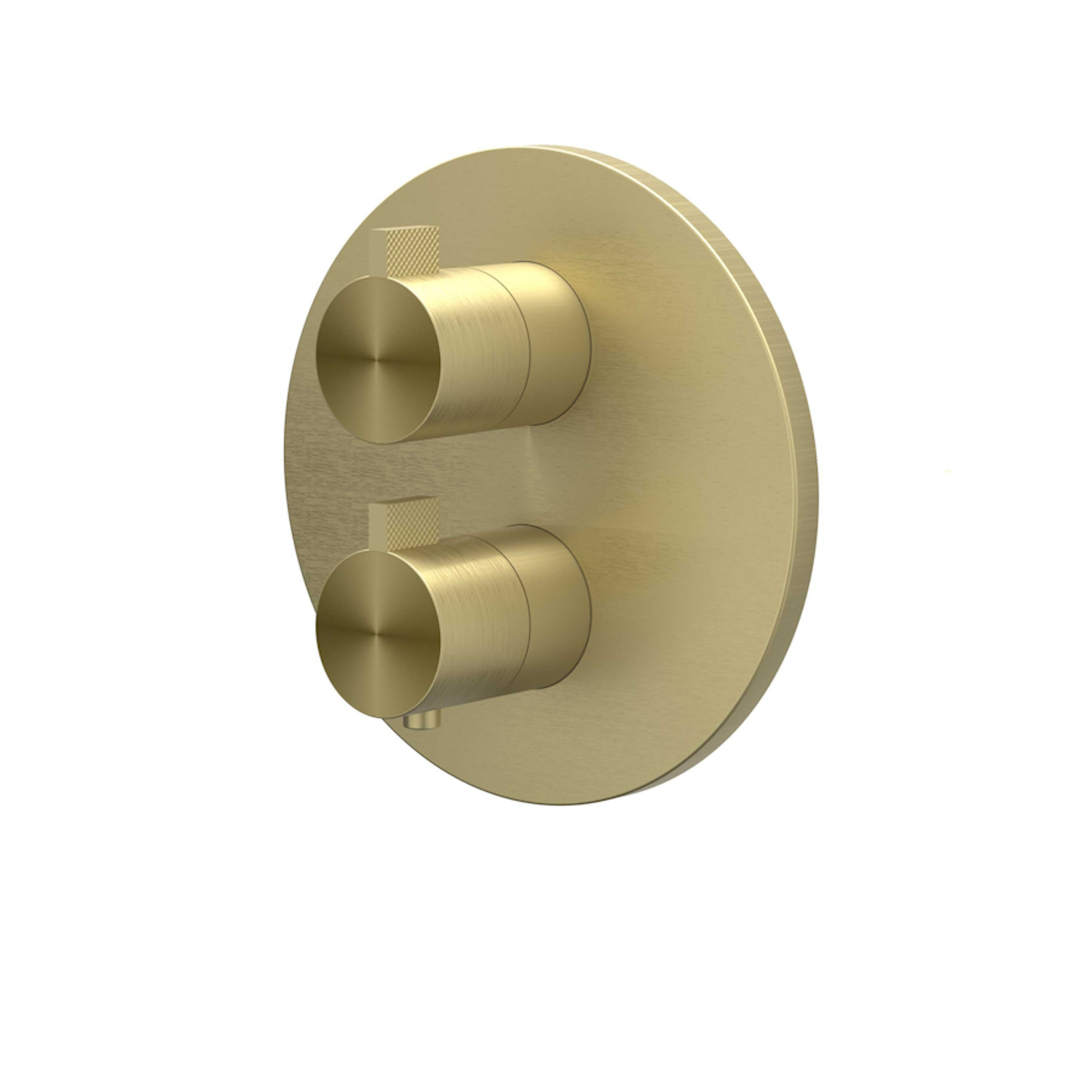 Dit afbouwdeel is van het merk IVY uit de serie Tribe en is voor een inbouwthermostaat. De kraan is gemaakt van RVS316 en heeft een rond rozet. De kleur van de kraan is Goud en heeft een geborstelde matte finish met een PVD-coating. De kraan heeft een 2-weg stop-omstel functie. Die biedt gemak in het regelen tussen verschillende wateruitgangen te schakelen.