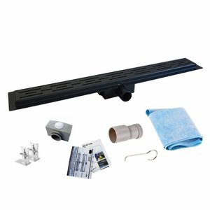 Mat Zwarte RVS Douchegoot Flens met Uitneembaar Sifon 110x7cm 6,7cm Diep MAT ZWART ROOSTER