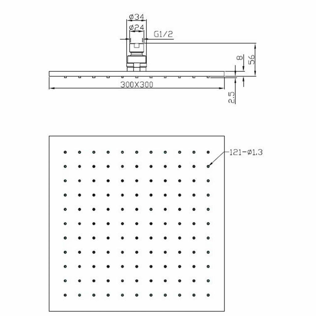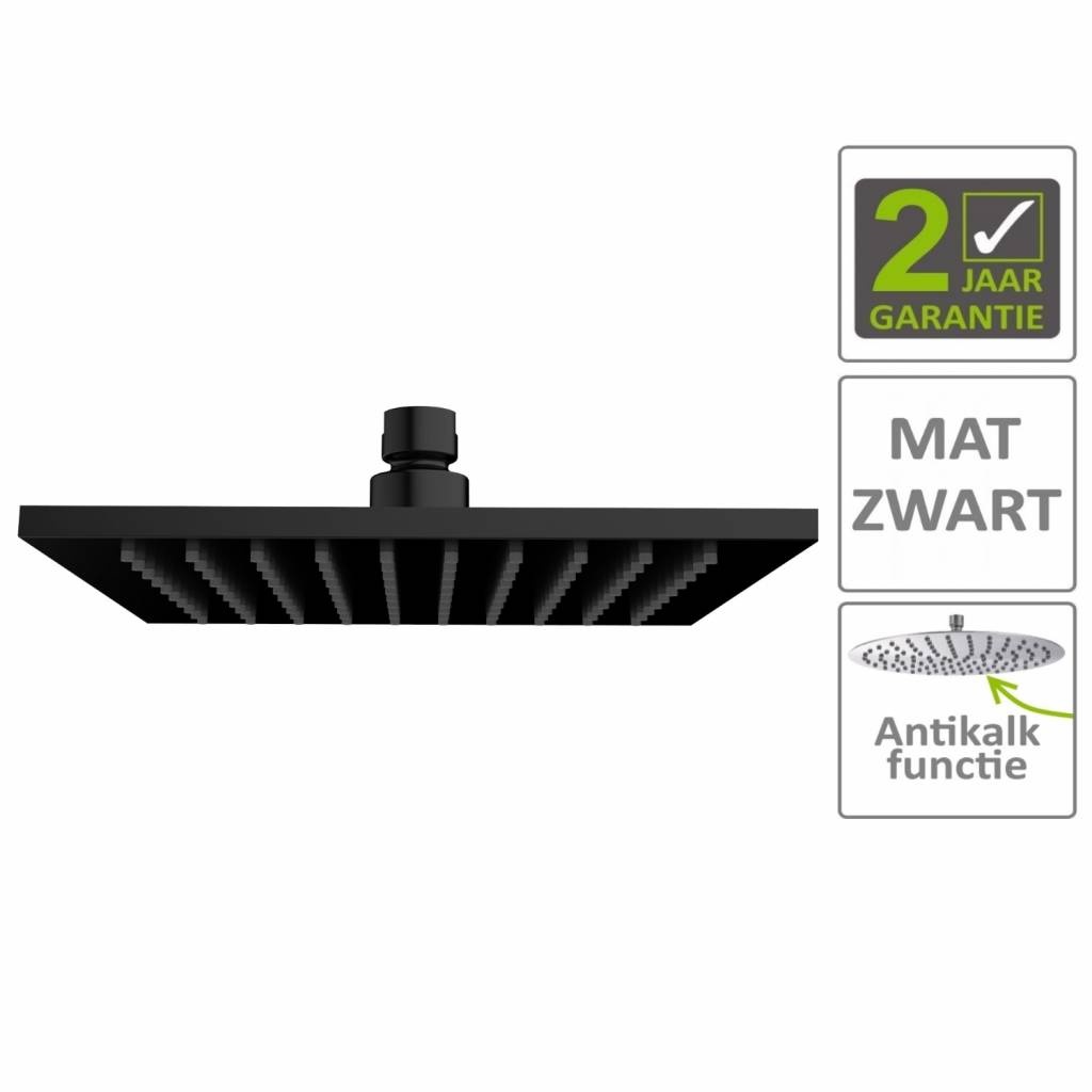 Deze luxe hoofddouche is uitgevoerd in de prachtige kleur mat zwart. Het is een heerlijke regendouche met een douchekop van 30x30 centimeter en 8 mm dikte. Deze hoofddouche is te combineren met vrijwel alle muuren plafonduitlopen en is voorzien van een anti-kalk functie. De handdouche is voorzien van rubberen sproeimondjes waar kalk zich moeilijk aan kan hechten. Wanneer u de sproeimondjes heen en weer beweegt, breekt de kalk en is daarna makkelijk te verwijderen.