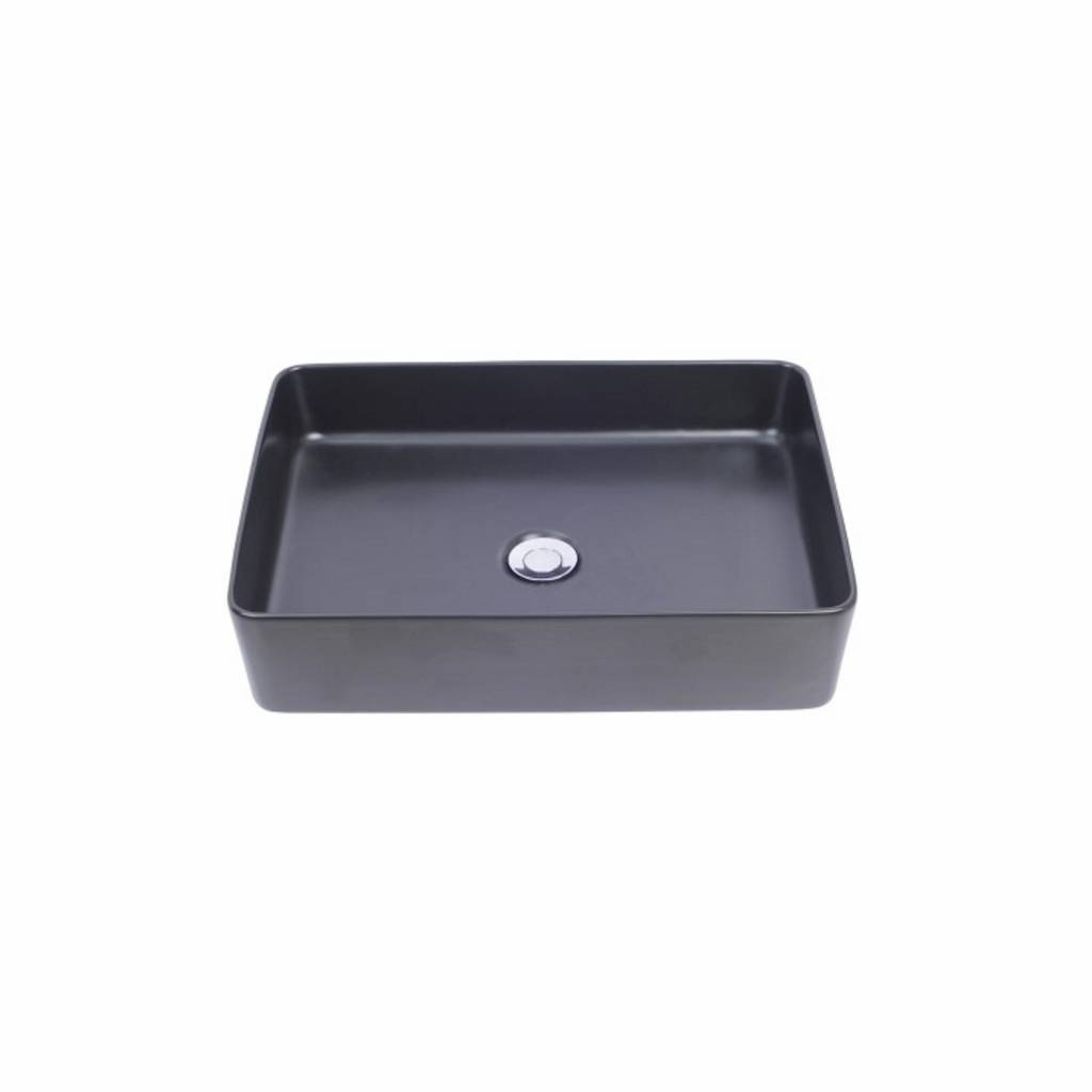 Deze mooie mat zwarte rechthoekige waskom is een echte blikvanger in uw badkamer. Mat zwarte items in de badkamer geven uw badkamer een moderne uitstraling. Uiteraard kunt u de waskom combineren met meerdere mat zwarte items in uw badkamer. De waskom is gemaakt van keramiek. Keramiek is noch metaal of polymeer en bevatten goede mechanische eigenschappen. Het is hard en heeft een hoge vloeigrens. Met uitzonderingen daargelaten is keramiek slijtvast, hittebestendig, non-elektrisch, non-magnetisch en non-metalisch. Keramiek is een hard kleigebakken materiaal met een glad oppervlak. Vuil en bacteriën glijden daardoor makkelijk van het keramiek en trekt niet in. Mede ook omdat keramiek gesloten poriën bevat waar geen vuil in kan zitten. De design waskom heeft een afmeting van 50x35x14.5 cm. Let op; de waskom wordt geleverd exclusief kraan, sifon en plug.