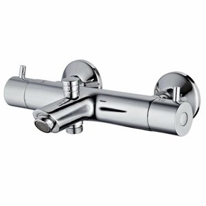 Badkranen van het merk Aqua Splash staan garant voor kwaliteit en design. Dankzij de keramische schijven heeft de kraan een soepele beweging van de knoppen. De HOH maat is 15cm en is daarom op vrijwel alle bestaande muurplaten te plaatsen. Het design zorgt voor een mooie uitstraling in uw badkamer. Mengkraan met een geïntegreerde omstelknop. Met de aan-en uitknop bepaalt u of het water uit de uitloop of uit de doucheslang komt..