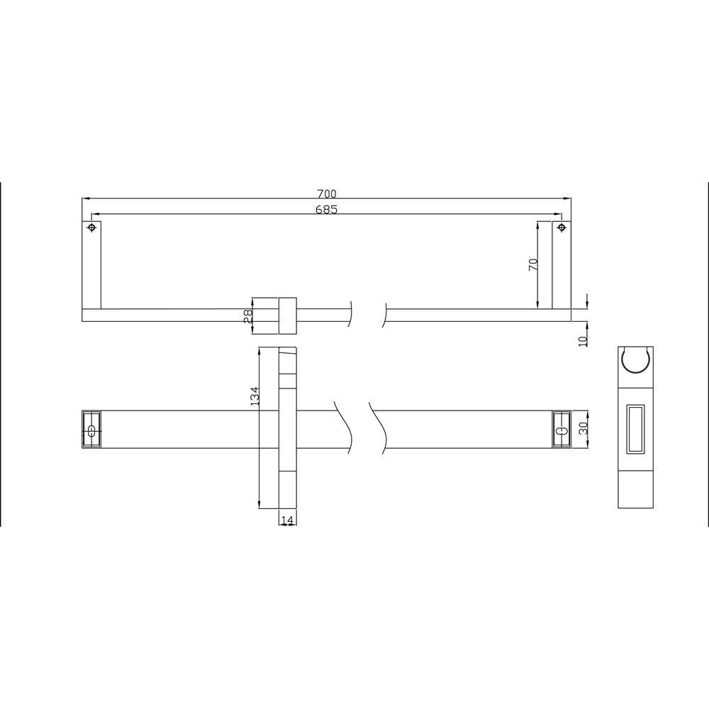 Chroom Messing Glijstang En Glijstuk Vierkant 700Mm
