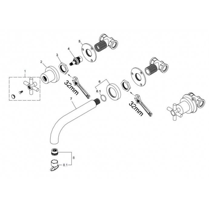 Donar Cross inbouw wastafelmengkraan 2 knops geborsteld staal