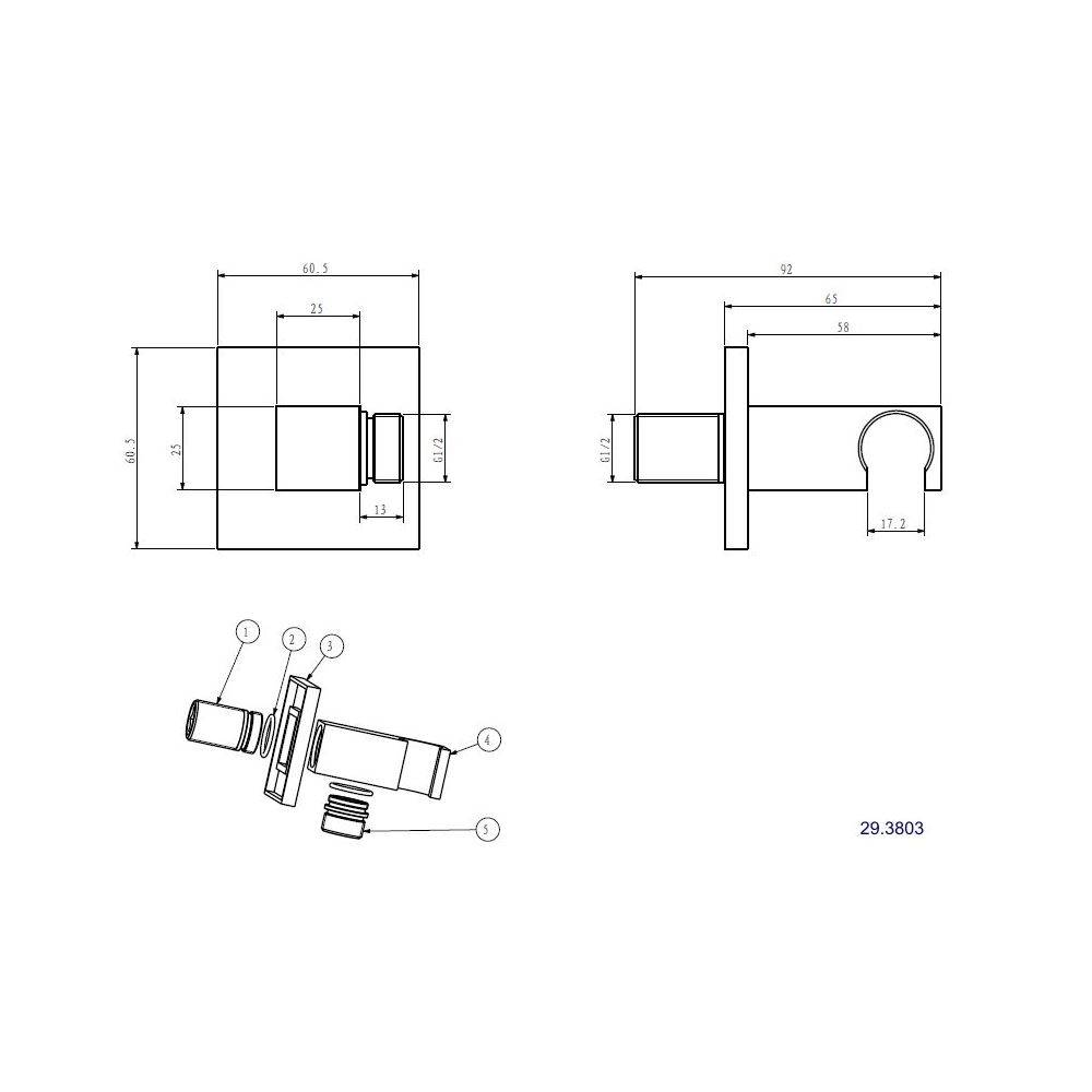 Luxe muur doucheaansluiting met opsteek vierkant 1/2" chroom met ABS vierkant rozet. Het strakke design zorgt voor een mooie uitstraling in uw badkamer dat zeker goed past in combinatie met een goede hoofddouche.