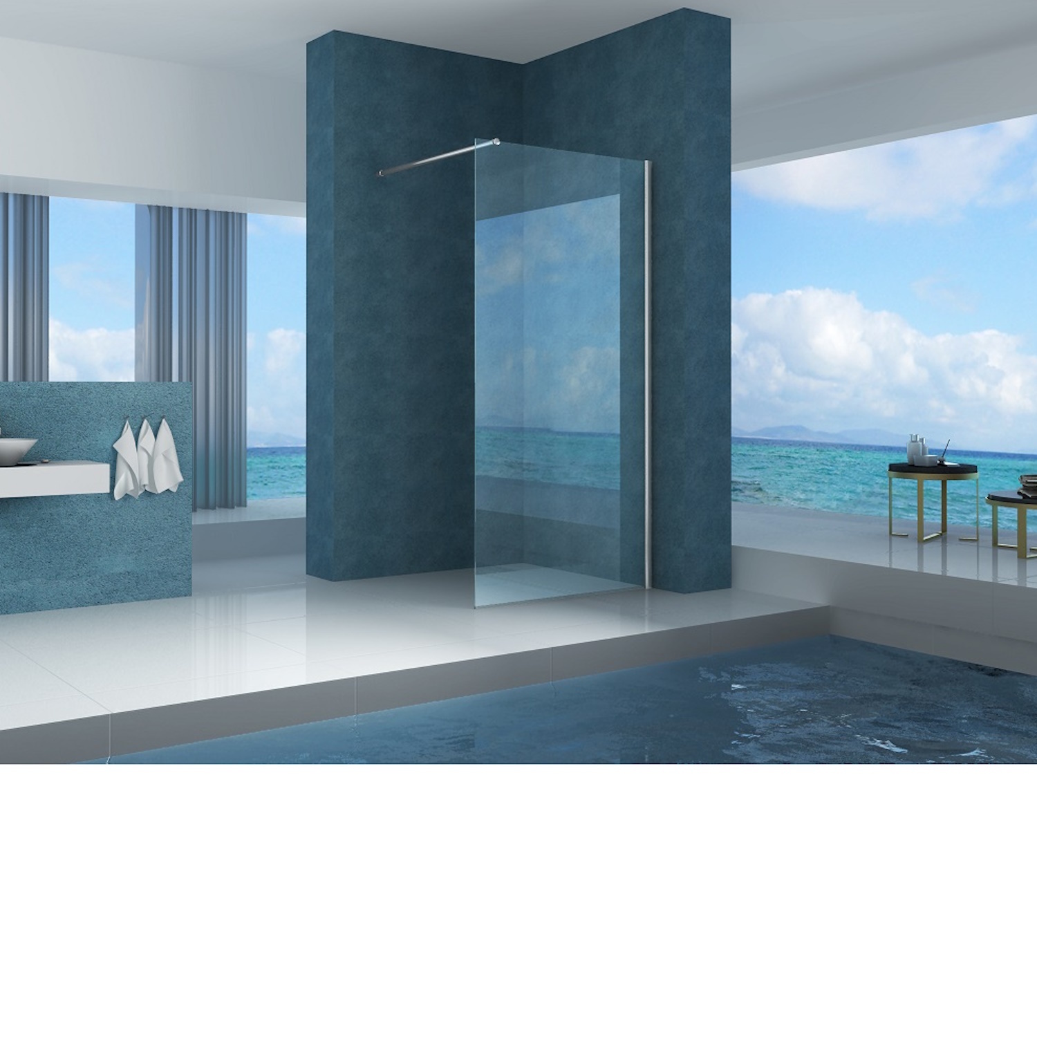 Deze mooie design inloopdouche is al jaren één van de hardlopers binnen ons assortiment. Door de dikte van het glas en de mooie facet geslepen randen en uiteraard het mooie aluminium muurprofiel geeft deze glaswand een ongekend nette sfeer in uw badkamer. Deze douchewand wordt geleverd met een messing verchroomde stabilisatiestang. Deze is handmatig in te korten naar de gewenste maat. Kom ook eens langs in onze showroom en bekijk deze zeer luxe inloopdouche met uw eigen ogen!