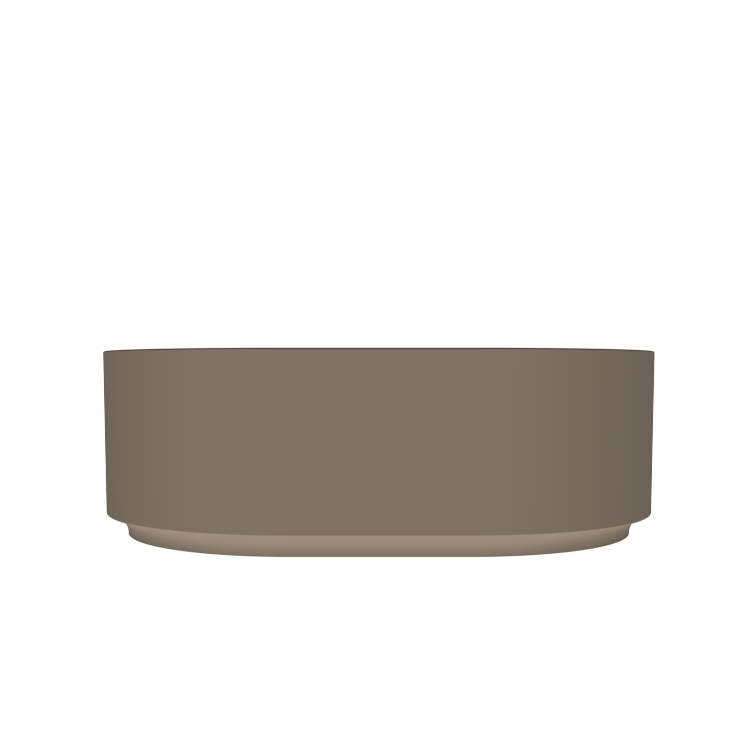 Deze specifieke waskom is ovaal en heeft een breedte van 40 cm. De kom is 28 cm diep en 13 cm hoog. Deze kom is uitgevoerd in een mat truffel kleur.