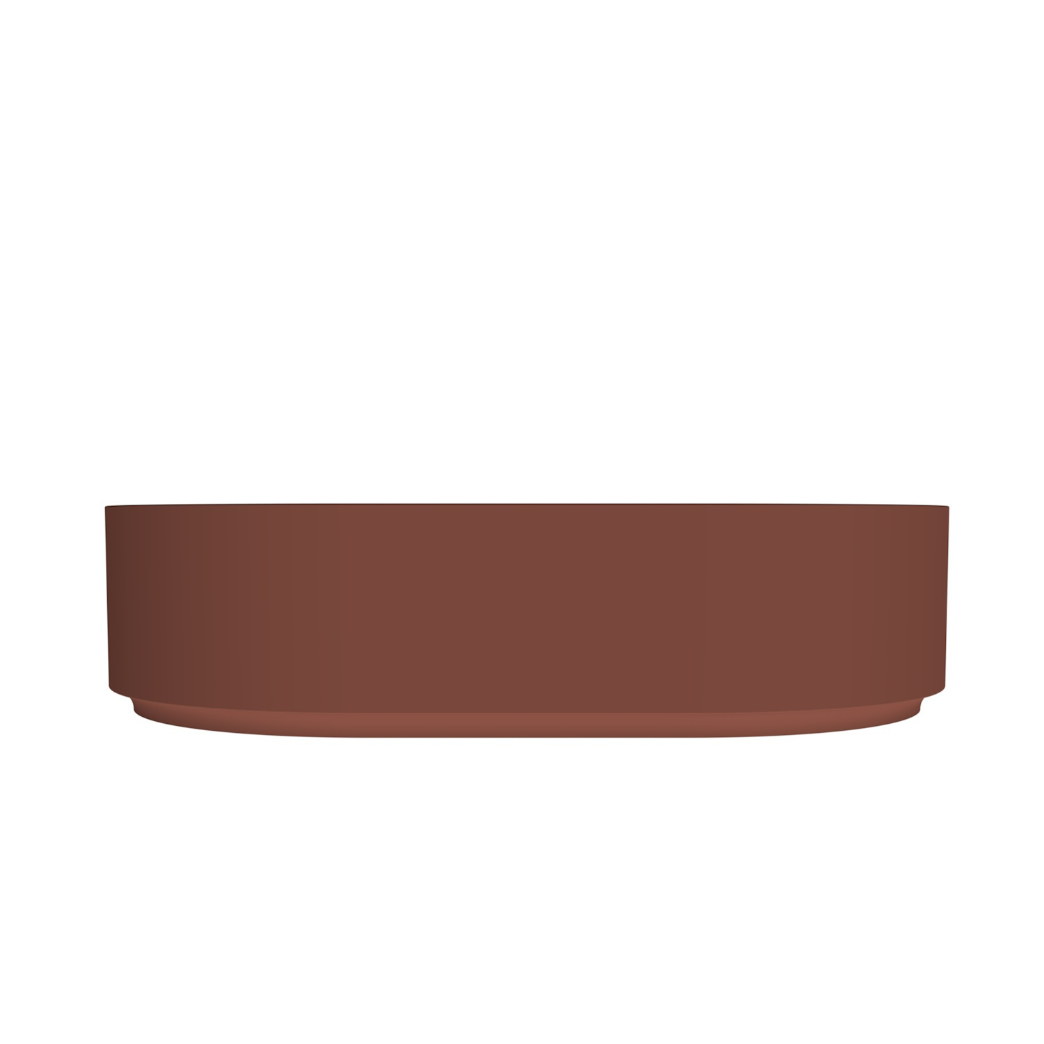 Deze specifieke waskom is ovaal en heeft een breedte van 55 cm. De kom is 36 cm diep en 13 cm hoog. Deze kom is uitgevoerd in een mat terracotta kleur.