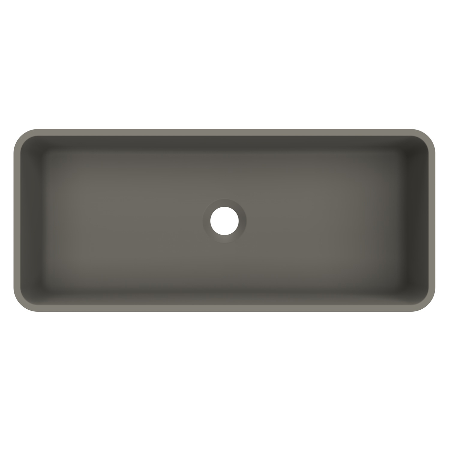 Deze specifieke waskom is rechthoekig en heeft een breedte van 60 cm. De kom is 26 cm diep en 13 cm hoog. Deze kom is uitgevoerd in een mat quartz grijze kleur.
