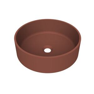 Deze specifieke waskom is rond en heeft een diameter van 40 cm. De kom is 13 cm hoog. Deze kom is uitgevoerd in een mat terracotta kleur.