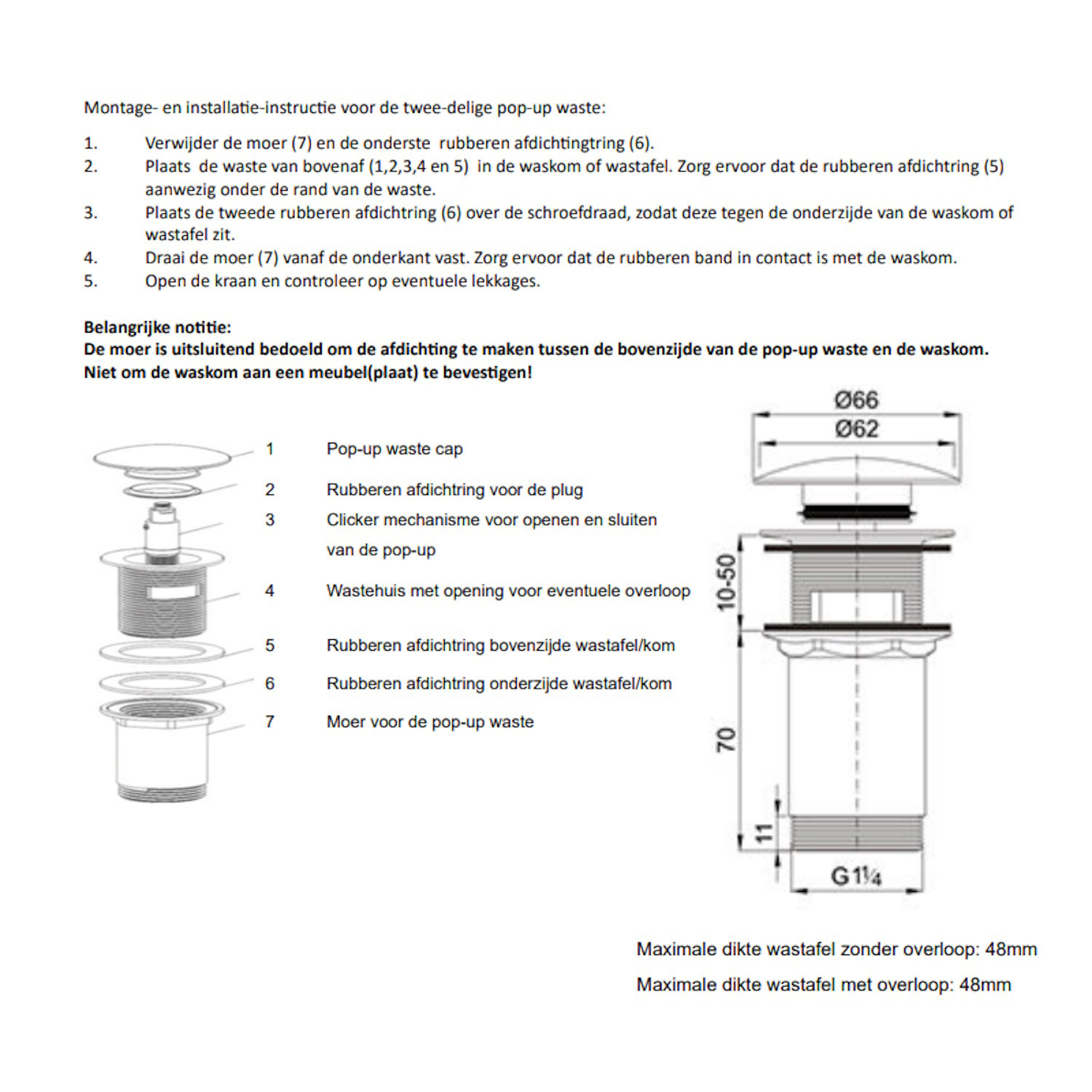 Deze Pop-up Waste is van het merk Arcqua en is gemaakt van metaal. De waste is universeel voor met of zonder overloop te gebruiken. De cap is gespoten in een mat terracotta kleur voor een stijlvolle afwerking van uw wastafel.