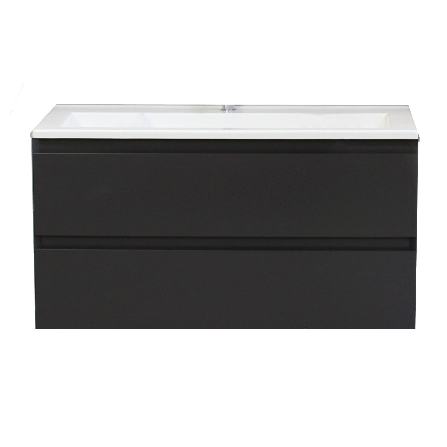 Het badmeubel heeft een breedte van 100 cm, een hoogte van 55 cm en een diepte van 46 cm. De set is verkrijgbaar in meerdere afmetingen en kleuren.