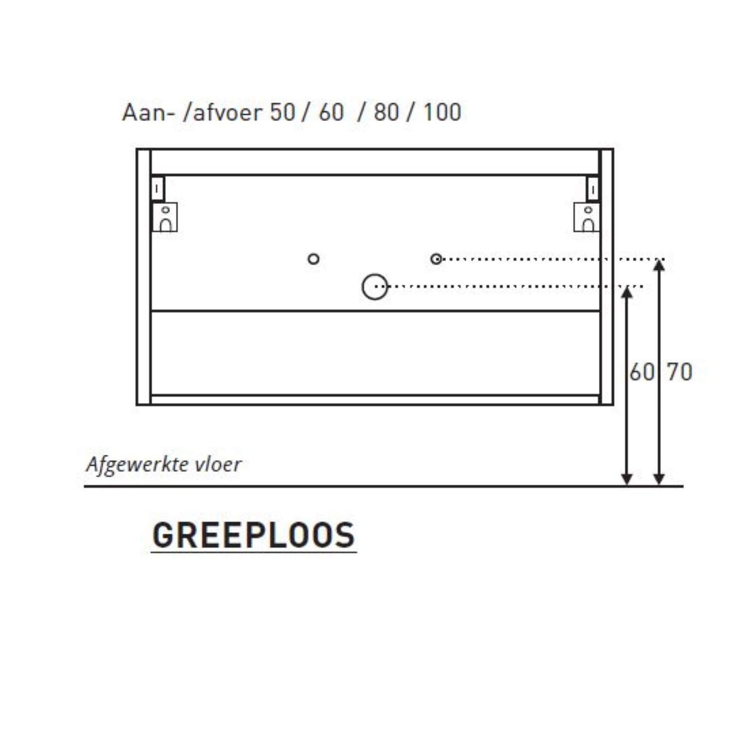 De afmetingen van de onderkast met wastafel zijn: 60 cm in de breedte, 55 cm in de hoogte en een diepte van 46 cm. De set is in meerdere afmetingen en verschillende kleuren beschikbaar.