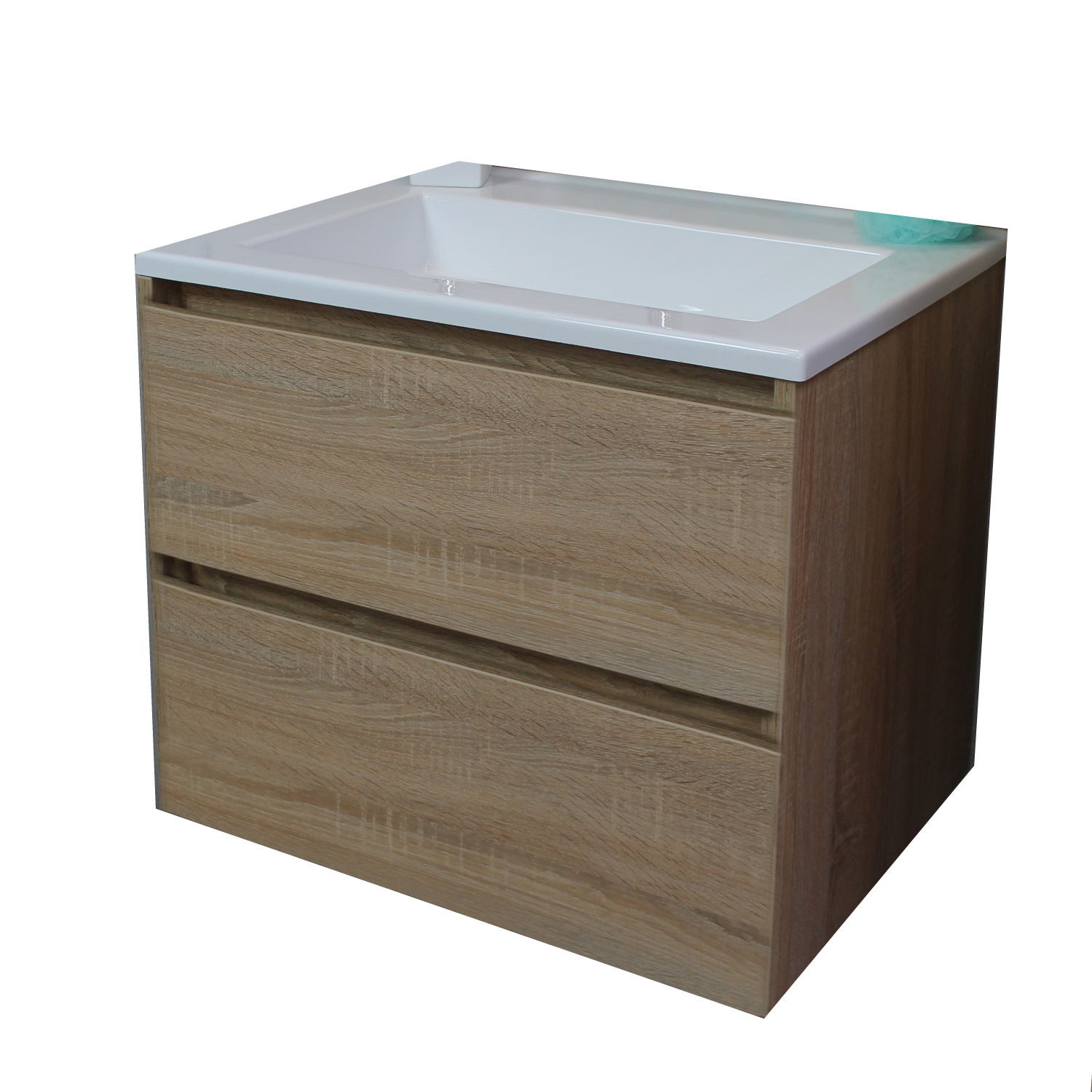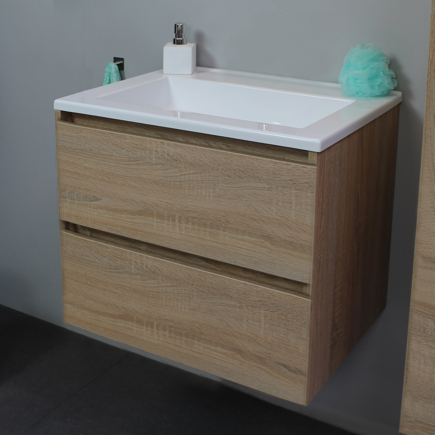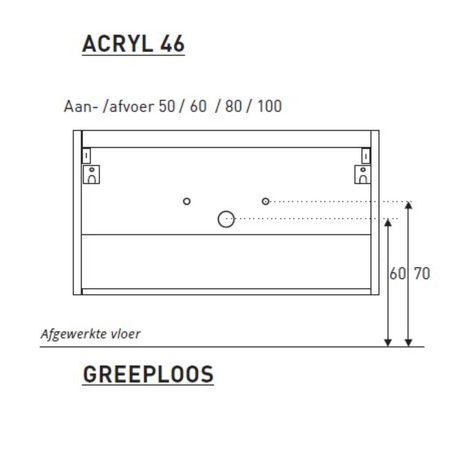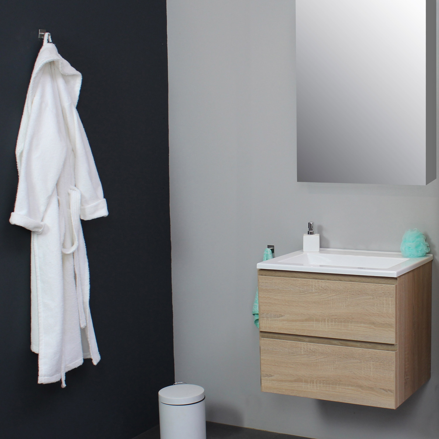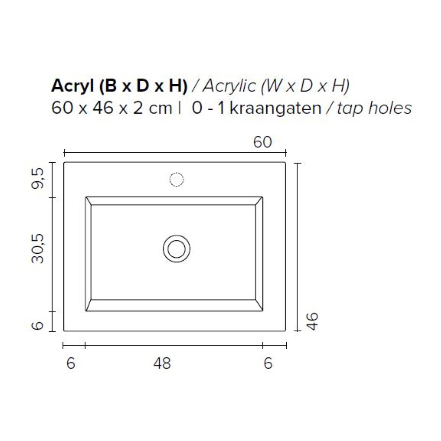 De afmetingen van het badmeubel zijn: 60 cm in de breedte, 55 cm in de hoogte en 46 cm diepte.
