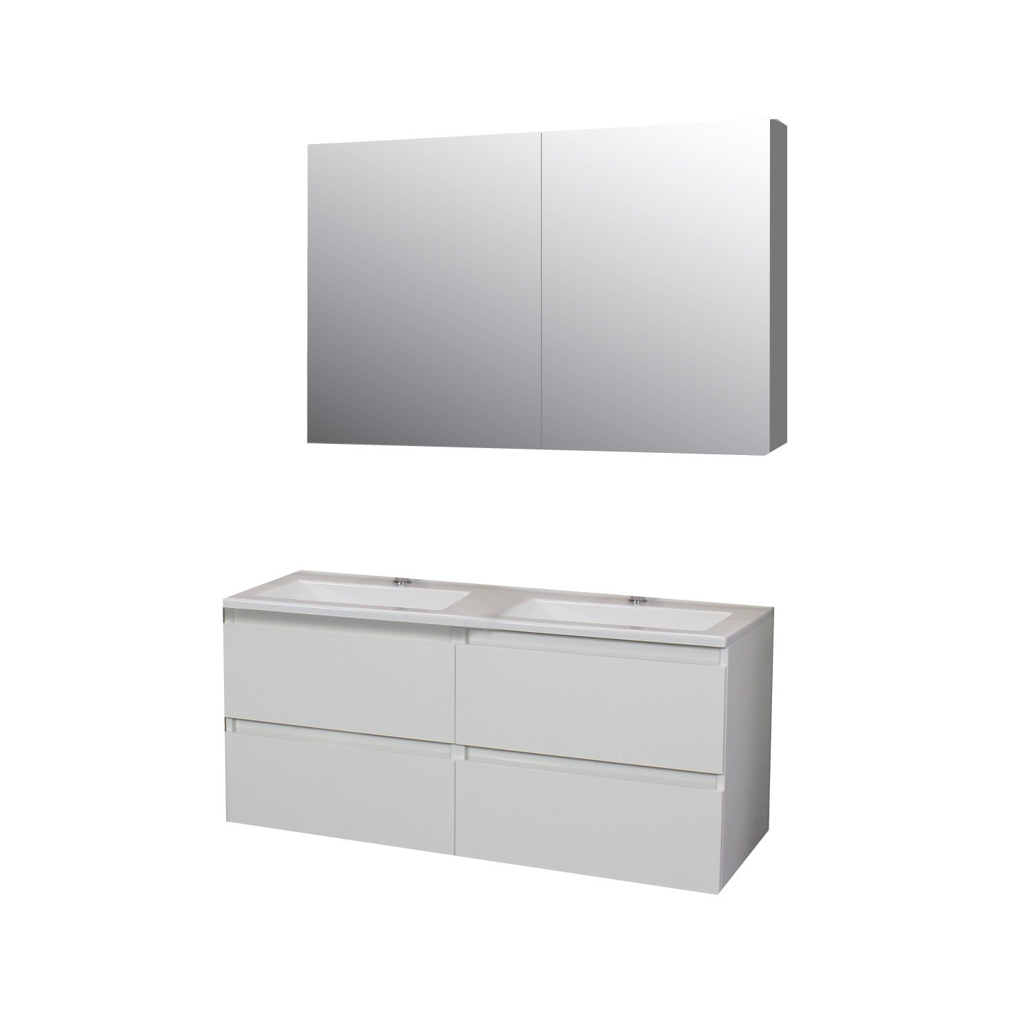 Dit prachtige badmeubel van Boss & Wessing beschikt over een hoogglans wit kleurige onderkast met een wastafel die gemaakt is van acryl. Het badmeubel past met het moderne design bijna in iedere badkamer. De wastafel wordt geleverd met twee kraangaten, waardoor u dus de keuze heeft om een opbouwkraan aan te sluiten op het badmeubel. Neem een kijkje op de website voor het ruime aanbod aan opbouw kranen. Het badmeubel wordt daarnaast geleverd inclusief grijze spiegel kast, waar u gemakkelijk uw badkamer artikelen in op kunt bergen. Ook is de kast eenvoudig te bedienen door middel van de 2 aparte deuren.