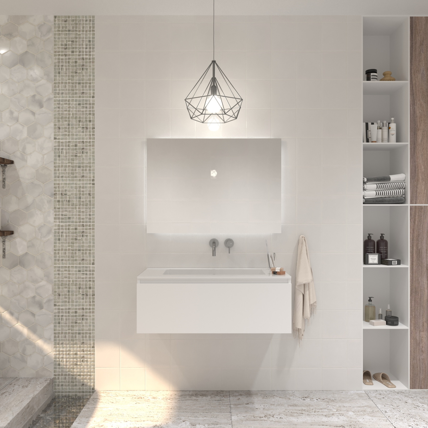 De Eros badkamermeubelset van Gliss Design is een echte blikvanger in uw badkamer. Het meubel is gemaakt van Melamine, waardoor deze perfect te gebruiken is in een natte ruimte. Melamine staat bekend om de onbreekbare en krasvrije eigenschappen. Daarnaast is het harde en gladde oppervlak gemakkelijk te onderhouden, omdat vuil en bacteriën geen kans krijgen om zicht te hechten. Door zijn compacte design blijft uw badkamer ruimtelijk ogen. Het doel van Gliss is om luxe en kwaliteit te creëren voor een betaalbare prijs. Dat is met de Eros serie dan ook zeker gelukt!