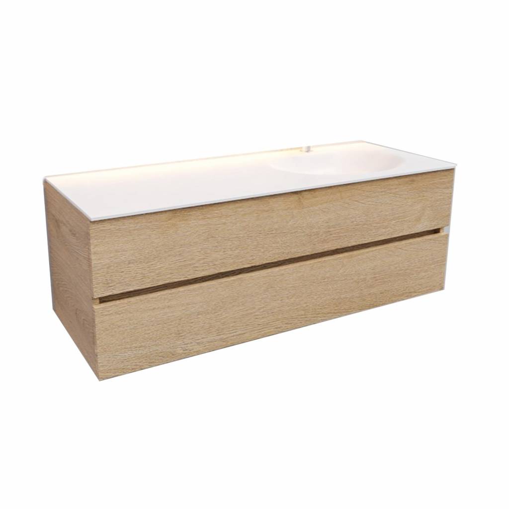 De wastafel is verkrijgbaar met een spoelbak in het midden, links of rechts. Vanaf 120cm breedte, kan de wastafel ook voorzien zijn van een dubbele spoelbak.