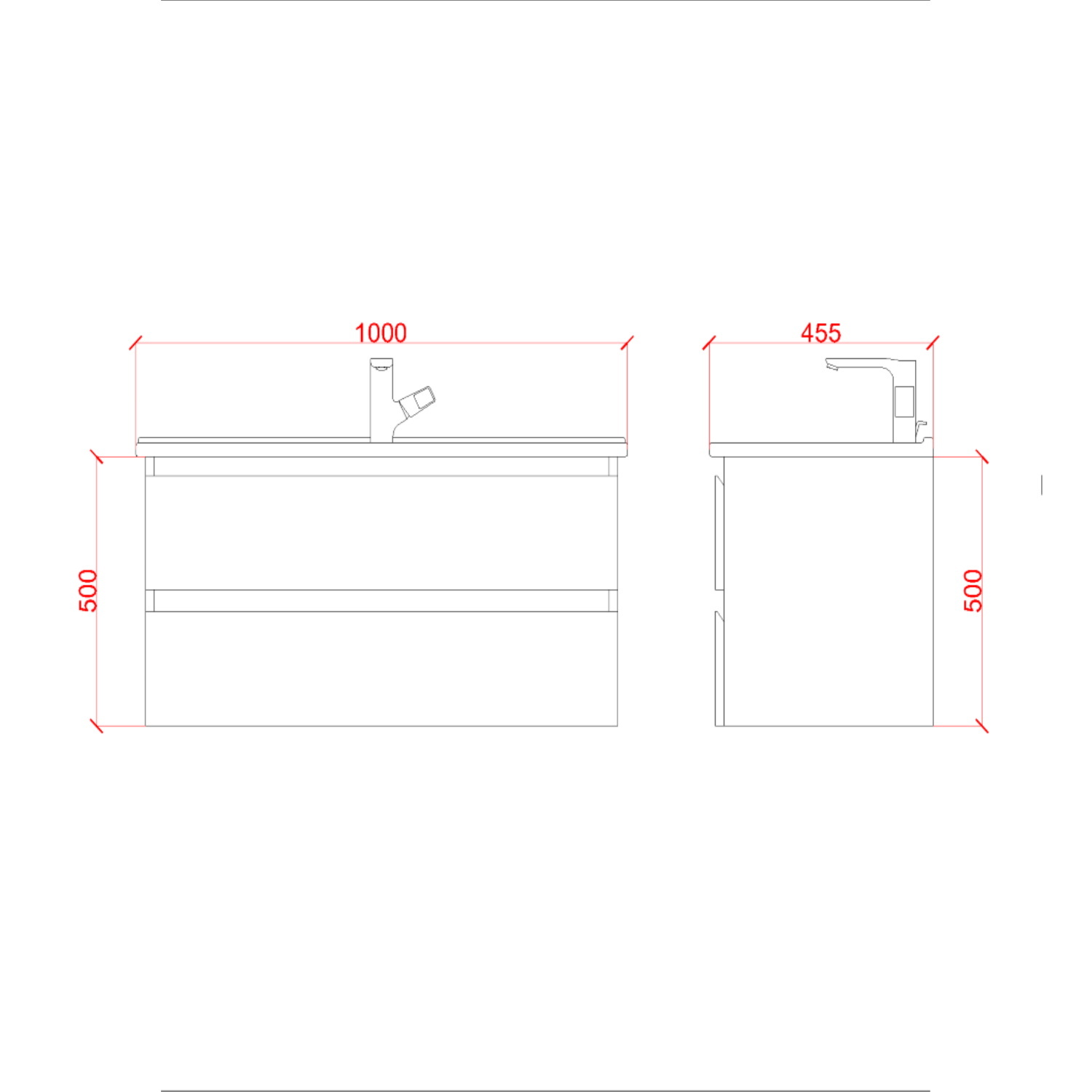 De wastafel is voorzien van een spoelbak die is uitgerust met een overloop. Ook bevindt zich achter deze spoelbak een kraangat waar u een kraan naar keuze in kunt monteren. Zo kunt u dit meubel volledig naar eigen wens inrichten! De wastafel heeft een dikte van slechts 1,9 cm waardoor deze nauwelijks ruimte in beslag neemt.