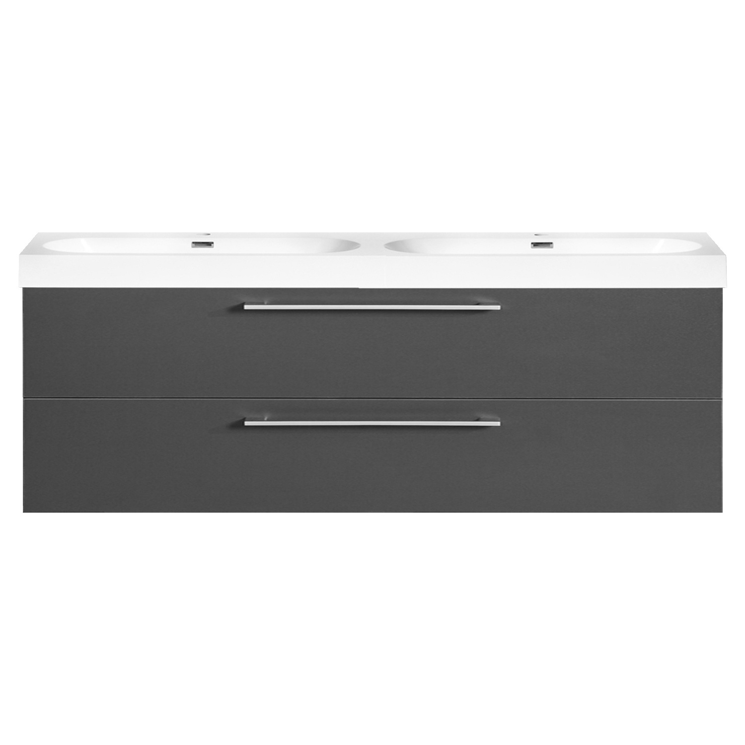 Deze set van Differnz Somero krijgt u een prachtige wastafel onderkast in de kleur antraciet. Deze onderkast heeft een afmeting van 57 cm hoog, 120 cm breed en 38 cm hoog. Ook is de set voor zien van een betonnen wastafel die u gemakkelijk op de kast kunt zetten. Deze wastafel heeft een grijze kleur en heeft een afmeting van 38x120x9 cm.