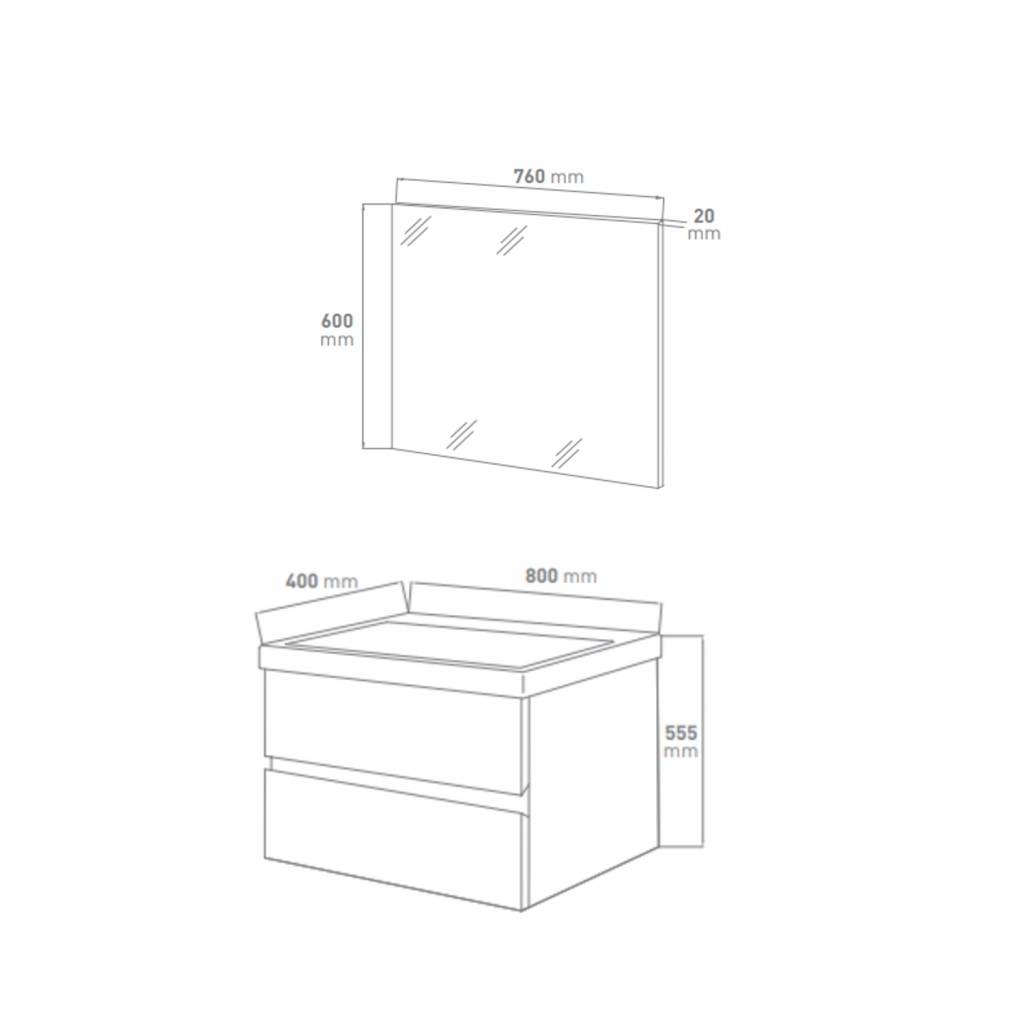 Het meubel van 80x50x40cm is voorzien van twee geruisloze softclose laden en zijn greeploos. U opent de meubels door middel van de gleuf die tussen de laden zit. Het pakt gemakkelijk vast en is ook nog eens strak voor het oog.