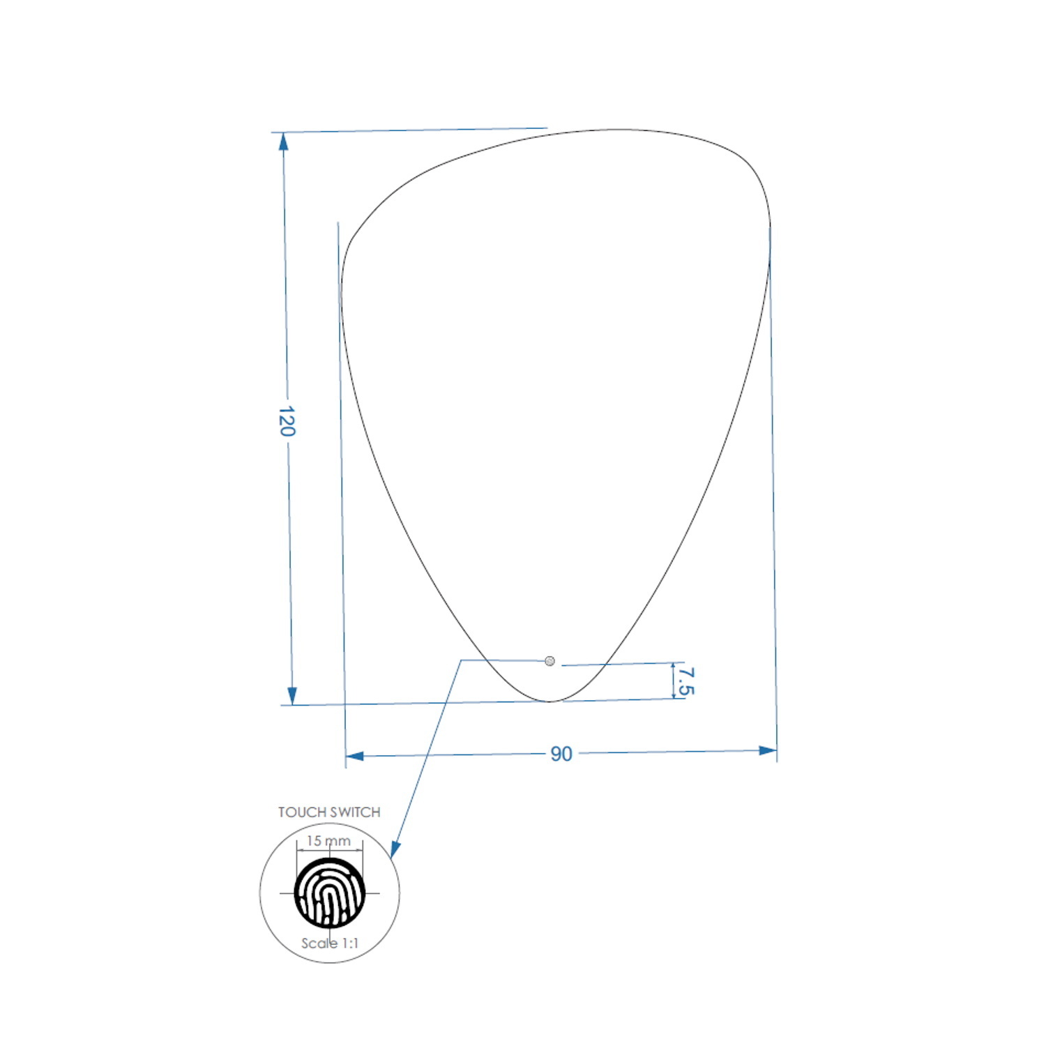 De verlichting en de verwarming zijn te bedienen met 2 touchknoppen.
