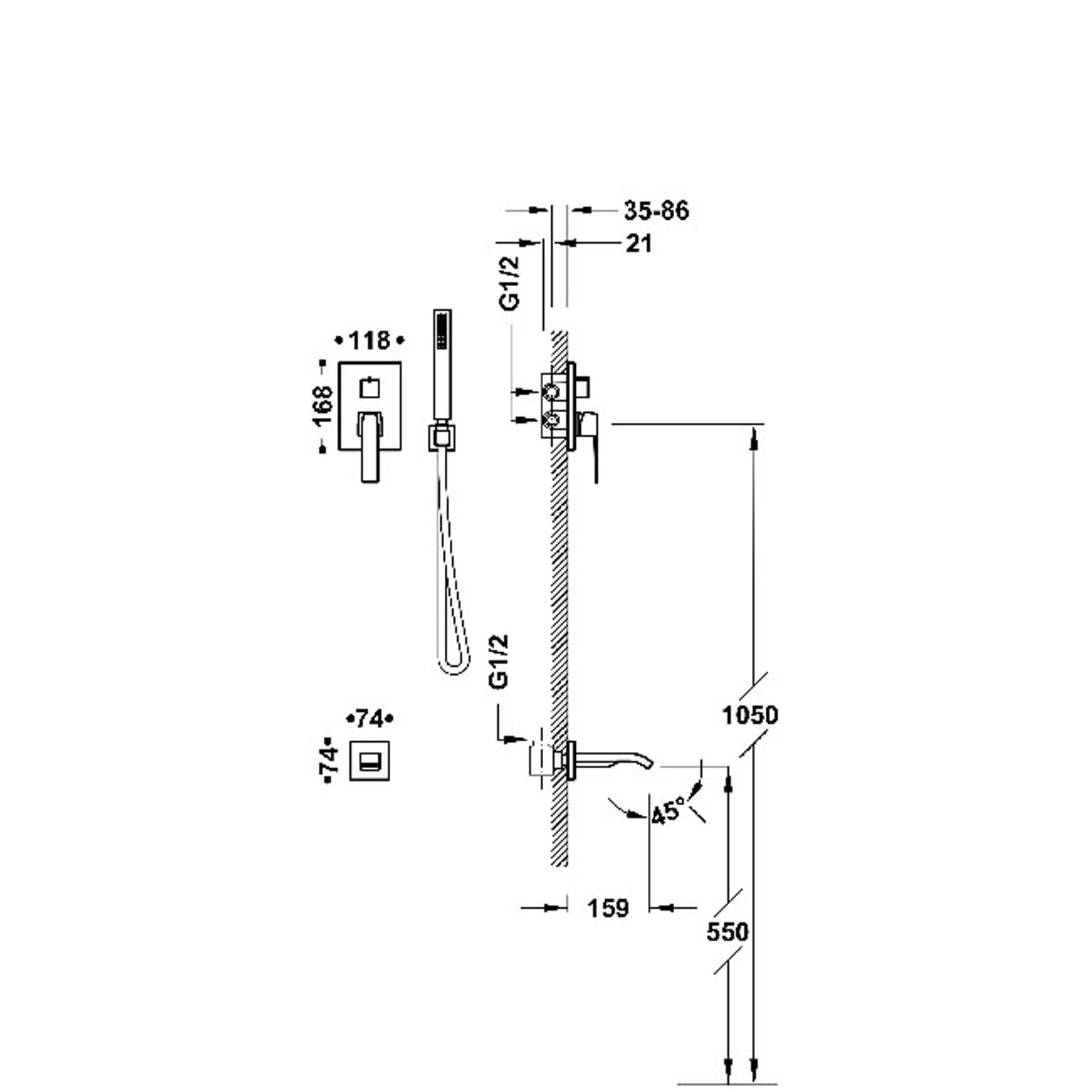 De afdekplaat van de kraan heeft een afmeting van 16,8x11,8 cm. De afdekplaat van de uitloop is 7,4x7,4 cm. De uitloop is 15,9 cm lang. Het is een mengkraan. U bedient de kraan met de hendel. Door de hendel naar links en rechts te bewegen stelt u de gewenste temperatuur in. De knop boven de hendel is de omstelinrichting. Hiermee kunt u switchen tussen de handdouche en de baduitloop.