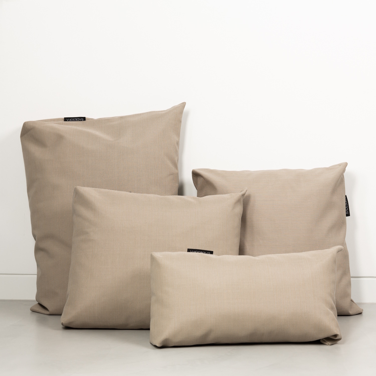 De kussenhoes is gemaakt van 72% polyvinylchloride, 20% polyester en 8& synthetische vezel. Hij kan los gehaald worden van de binnenhoes en kan hierdoor zowel gewisseld worden als gewassen worden in de wasmachine tot 60 graden. Door dit materiaal zullen zouten en oliën zicht niet hechten aan het weefsel van het kussen. Het binnenkussen is gemaakt van 100% polyester. Het kussen is verzwaard met 10-voudig gezuiverd kwartszand waardoor dit badkussen geen drijfvermogen heeft.