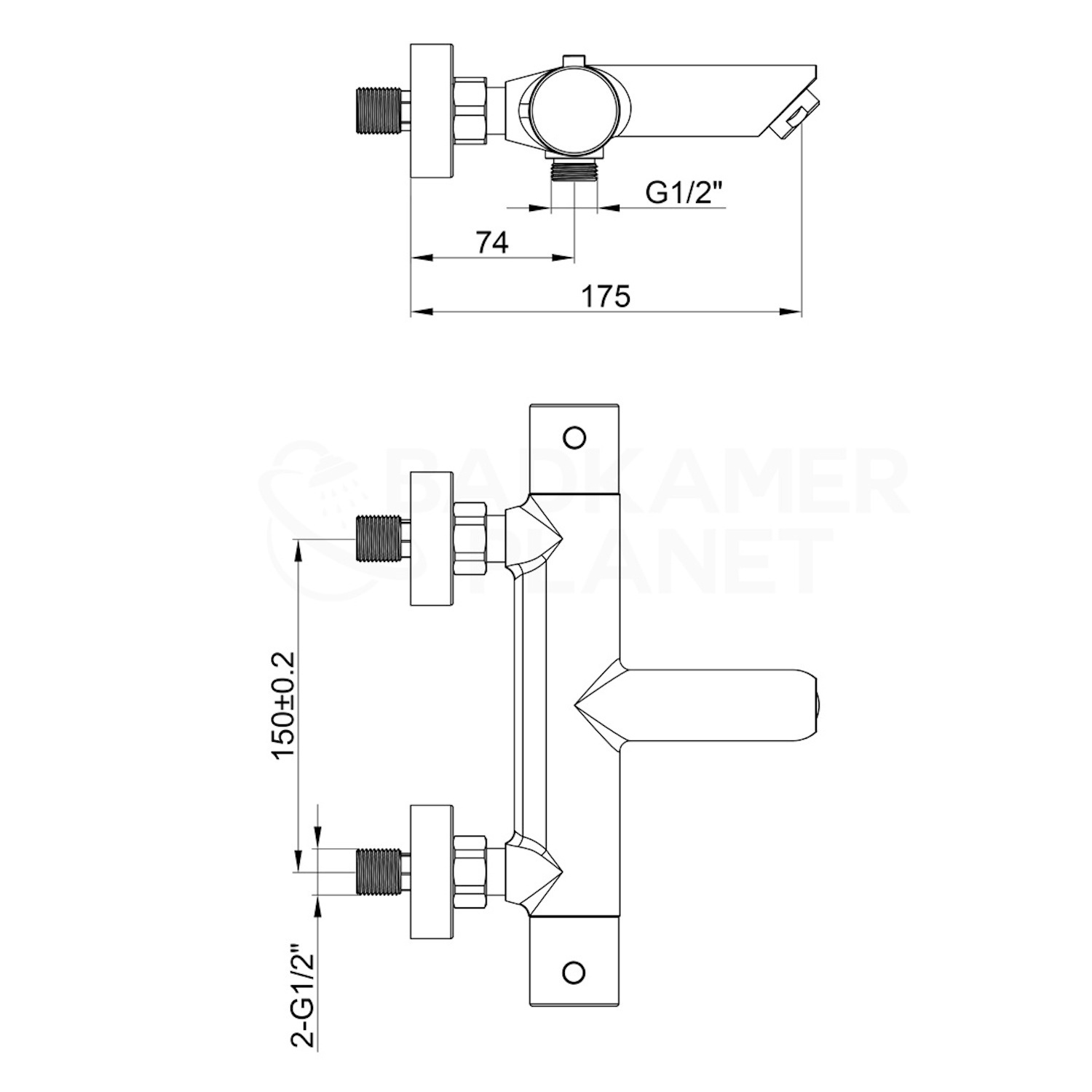 Geef uw badkamer een luxe uitstraling met Geborsteld Goud! Deze prachtige badkraan is elegant uitgevoerd met een geribbelde textuur aan de knoppen. Dit maakt de kraan net iets unieker en geeft bovendien extra grip! De kraan is themostatisch en heeft 2 grepen. De één om de temperatuur te bepalen, en de ander om de waterstroom te bepalen. Daarnaast zit aan de onderkant van de kraan een aansluiting voor uw doucheslang. Deze zit niet inbegrepen.