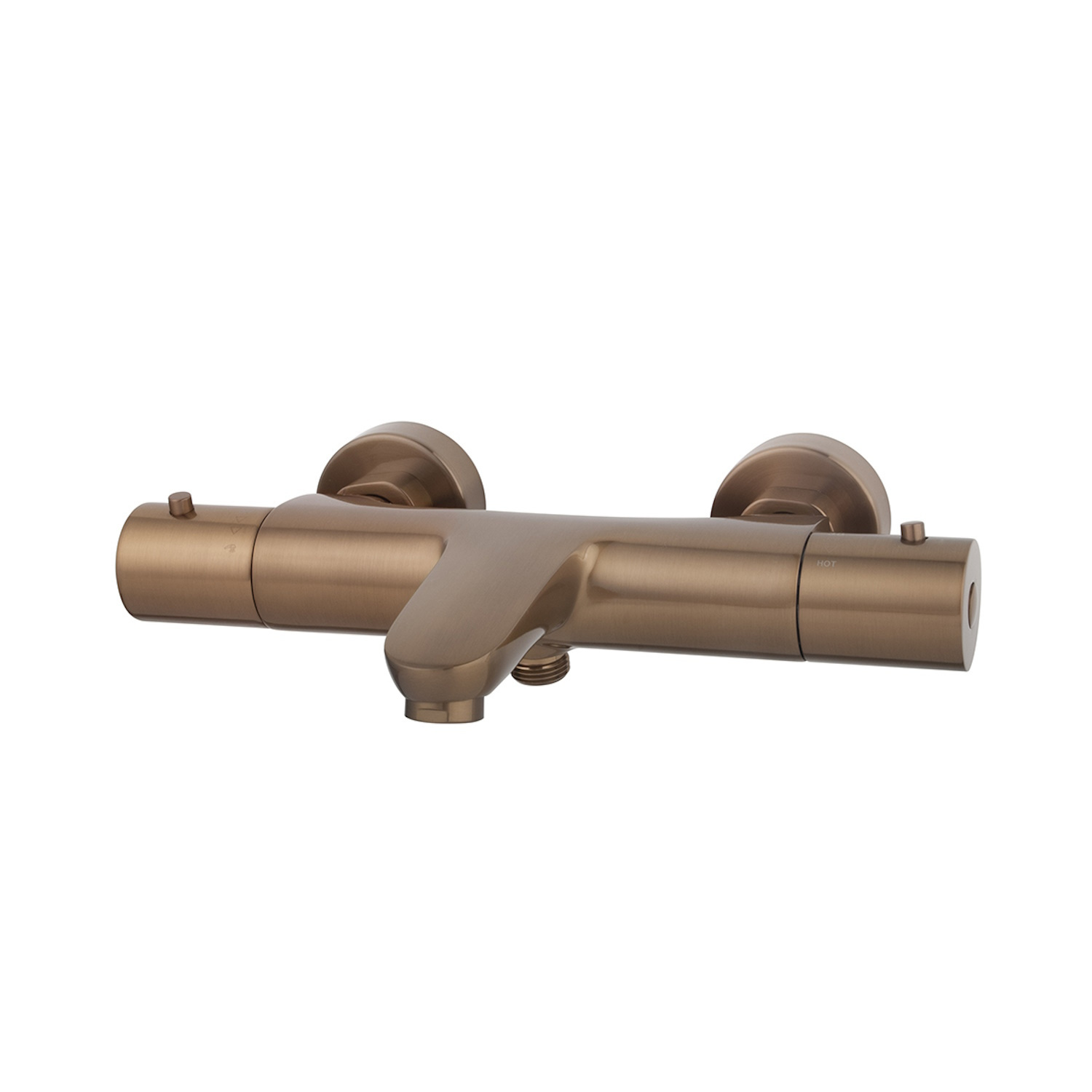Bent u op zoek naar een thermostatische badkraan voor in uw badkamer? Dan is deze badmengkraan van BWS uit de serie Karsten echt iets voor u. De kleur van deze badmengkraan is geborsteld brons koper. De afmetingen van de kraan zijn: Lengte 29 cm, diepte 16.9 cm en de diameter van de rozetten zijn 6 cm. De maat van de aansluiting is 1/2. De kraan heeft 2 grepen, waarvan de rechterkant voor het regelen van de temperatuur is en de linkerkant voor het regelen van de kraan en handdouche is. Ook kunt u met de linkergreep de kraan uit zetten. Door zijn kleur en design past deze kraan in elke moderne badkamer. Met deze kraan komt luxe en design samen.