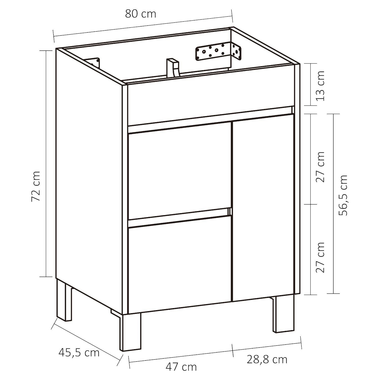Het complete badmeubel Differnz Sofi 80 cm past door de eenvoudige maar strakke vormgeving in iedere moderne badkamer. De onderkast wordt geleverd met een mooi schuif deur en is uitgevoerd in gelamineerd MDF. MDF is een veelgebruikte houtsoort. Deze meubels zijn afgelakt ter bescherming tegen vocht. Deze meubel is 80 cm breed, 45.5 cm diep en 72 cm hoog. De badmeubel is voorzien van 1 deur en 2 lades die gereeploos design hebben.