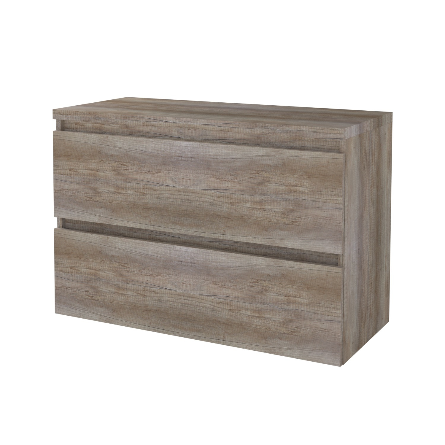 Deze mooie badmeubelset van Aquasplash komt uit de serie Salt, hij is gemaakt van Melamine in de kleur Scotch Oak. De hoogte van dit meubel is 65 cm, de breedte van dit meubel is 100 cm en de diepte is 46 cm. De afdekplaat die in deze set zit is gemaakt van hetzelfde materiaal als de onderkast, tevens is deze ook in dezelfde kleur.