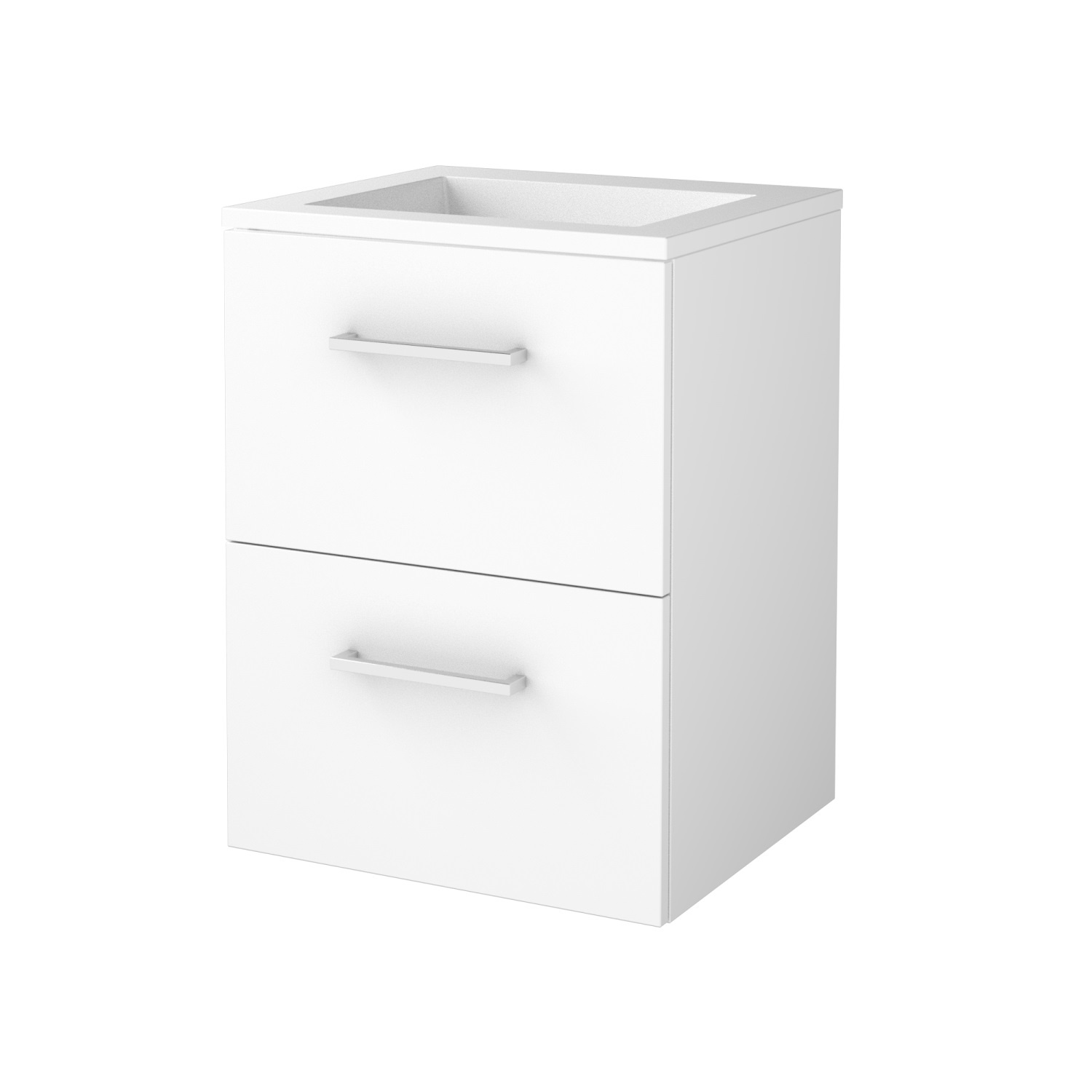 Deze mooie badmeubelset van Aquasplash komt uit de serie Salt, hij is gemaakt van MDF in de kleur Ice White. De hoogte van dit meubel is 65 cm, de breedte van dit meubel is 50 cm en de diepte is 46 cm. De wastafel die in deze set zit is gemaakt van Acryl in een witte kleur.