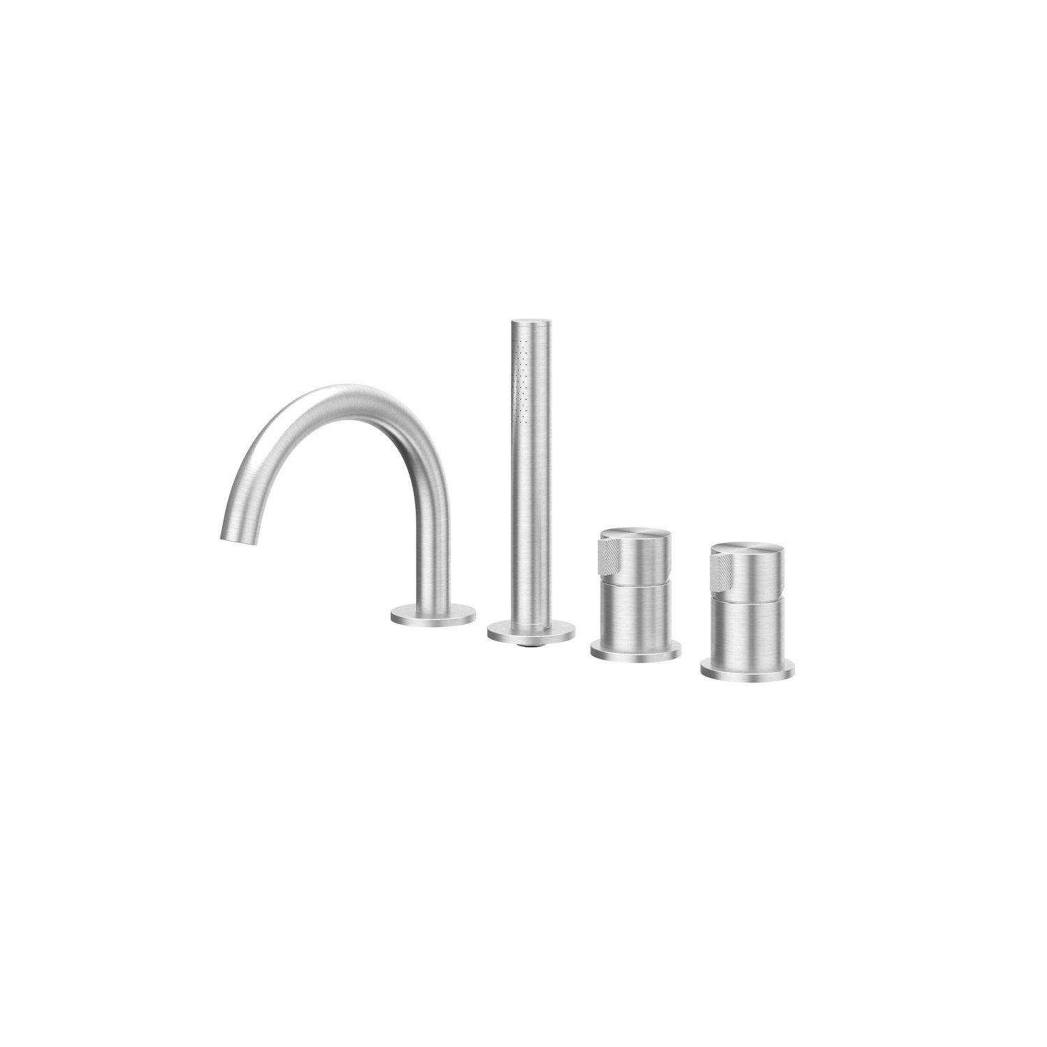 Deze badrandcombinatie is van het merk IVY uit de serie Tribe en is RVS van kleur met een geborstelde afwerking. De Badrandcombinatie bestaat uit een mengkraan, omstelkraan, handdouche en een kraan en is gemaakt van hoogwaardig RVS316. De uittrekbare handdouche biedt extra gemak en flexibiliteit bij het wassen en schoonmaken. De 4-gats mengkraan zorgt voor een nauwkeurige controle over de watertemperatuur en -druk, waardoor je altijd kunt genieten van een ontspannende bad ervaring. De badrandcombinatie zorgt voor een strakke afwerking, doordat de badrandcombinatie gemonteerd dient te worden in de rand van het ligbad.