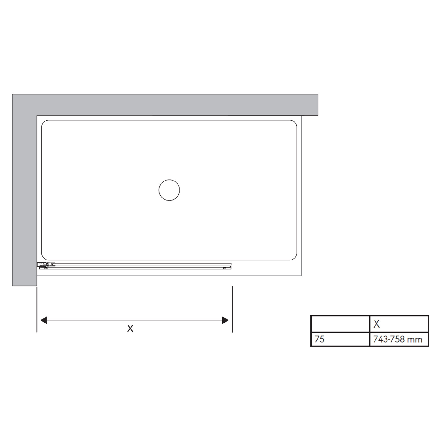 De badwand heeft een verstelbaarheidsbereik van 74.3 tot 75.8 cm aan beide muurzijdes. Daarnaast heeft de douchedeur een hoogte van 140 cm.