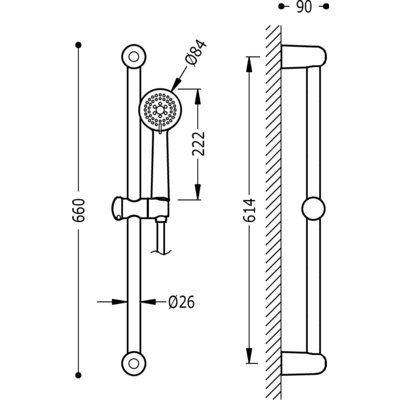 Barras Y Ducha Massage ECO set Ø 25 mm. Lengte 614 mm. Satijn slang