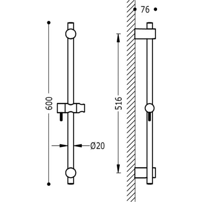 Barras Y Ducha PRACTIC‑MAX glijstang Ø 20,6 mm. Lengte 516 mm. met 2 verstelbare bevestigingssteune.