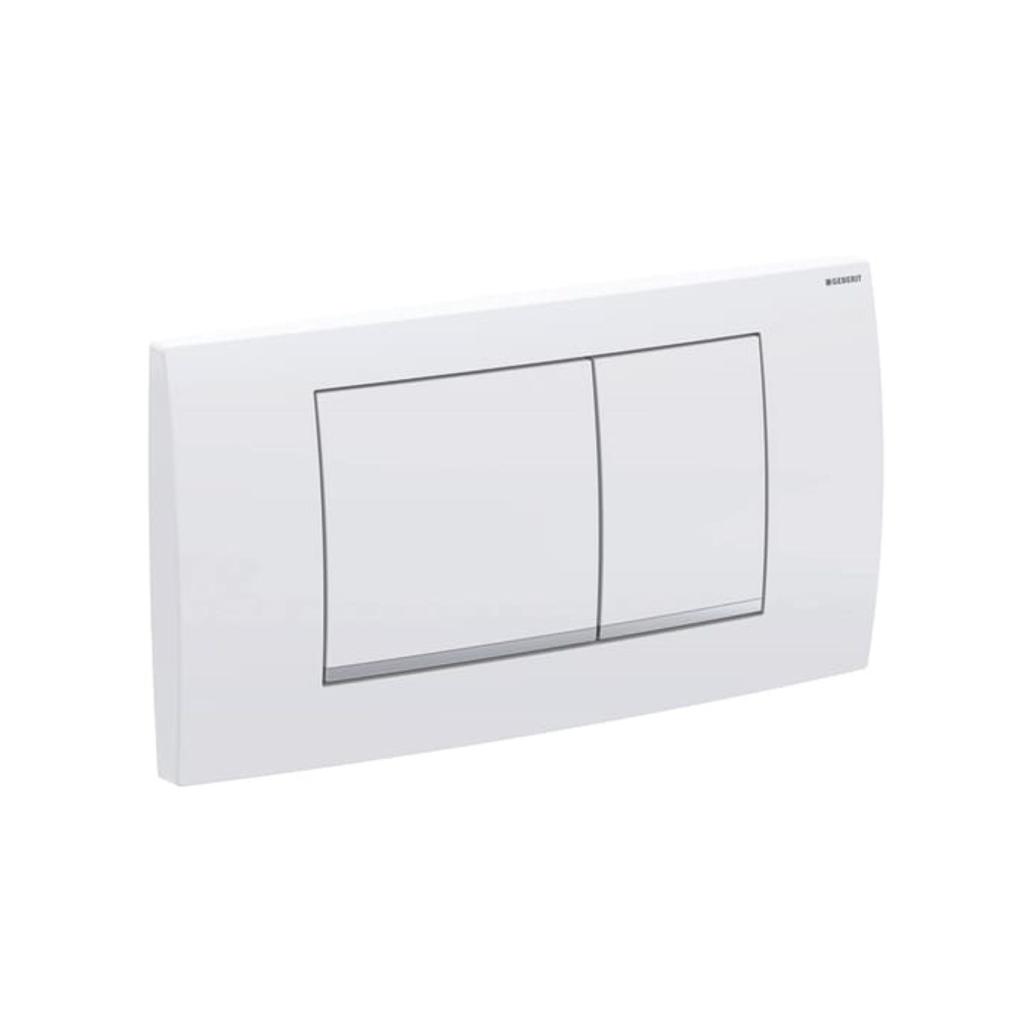 De Bedieningsplaat witte Geberit Twinline 30 Frontbediening heeft 2 mooie rechthoekige bedieningsknoppen en alleen geschikt voor frontbediening. Dat betekent dat de drukplaat alleen gemonteerd kan worden op een inbouwreservoir met een frontbediening. Verticaal tegen de muur aan en niet op het planchet.