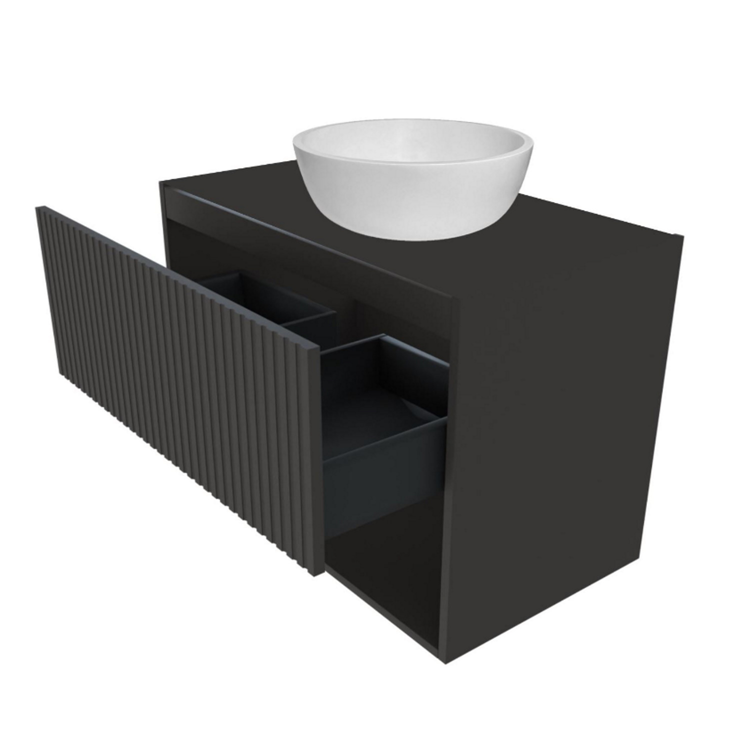 Uit de serie Rigatti van Best-Design komt dit fraaie meubel. Het meubel is greeploos en 99.6 cm breed. De diepte van het meubel is 44,2 cm en hij is 55 cm hoog. Het meubel is ook uitermate geschikt voor het plaatsen van een waskom of wastafel. De onderkast is afgewerkt met vochtwerende pvc folie. Het mat zwart gekleurde meubel heeft 1 softclose lade en de binnenkant van de lade is zwart gekleurd. Het materiaal van het meubel is van MDF. Verder is het bevestigingsmateriaal inclusief.