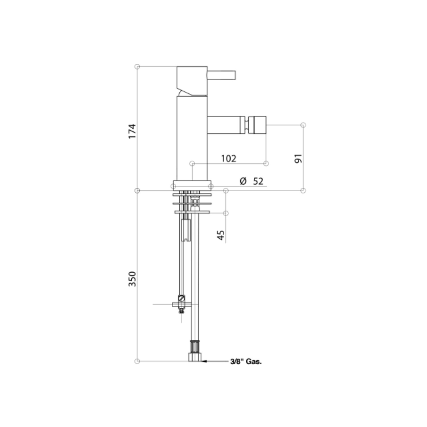 De kraan is 17.4 cm hoog en de hoogte tot aan de uitloop is 9.1 cm. Het is een bidetmengkraan en hoort dus in een bidet. Een stuk van de uitloop is draaibaar. De lengte van de uitloop en daarmee ook de diepte van de kraan is 10.2 cm. Dat is gemeten vanaf het midden van de kraan. De kraan komt niet met waste. Tot slot heeft de kraan een draadaansluiting van 3/8".