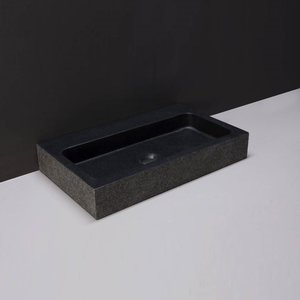 Wastafel Forzalaqua Taranto Graniet Gezoet Gebrand Zonder Kraangat Zwart 50x30x8 cm