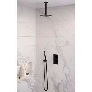 Inbouw Regendouche Set Brauer Black Edition Plafond Uitloop Ronde Hoofddouche 30 cm Mat Zwart