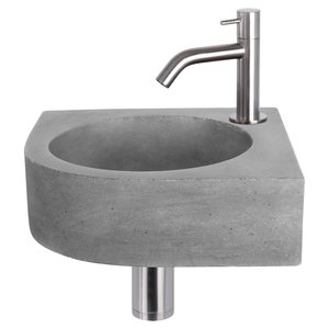Fonteinset Differnz Juti Rechts 38.5x18.5x9 cm Beton Grijs (inclusief mat verchroomde kraan sifon en afvoer)