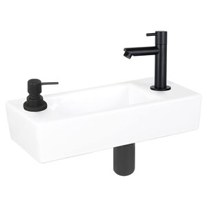 Fonteinset Differnz Sapon Rechts 42.5x18.5x9 cm Geintegreerde Zeepdispenser Keramiek Wit (inclusief mat zwarte kraan sifon en afvoer)