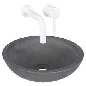 Waskomset Differnz Ravano Beton 40x12 cm Antraciet met Inbouw Wastafelkraan Mat Wit