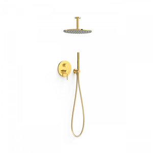 Regendoucheset Inbouw Tres Study Exclusive Rond 30 cm Met Plafondarm en Handdoucheset met Staafhanddouche Rapid Box Mat Goud